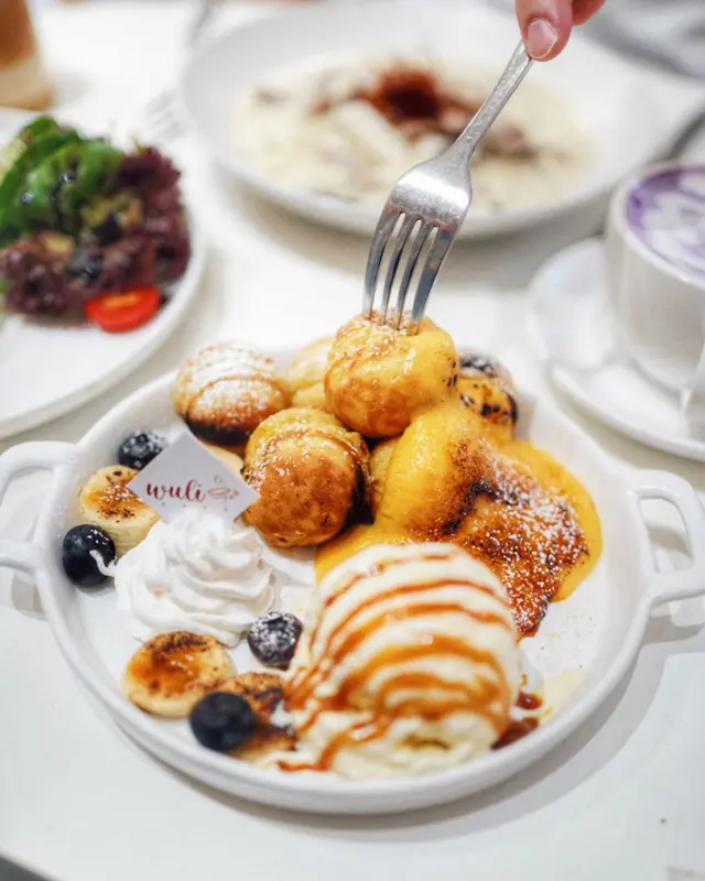 🌰🍝☕️☕️餐廳名: Wuli地區: 長沙灣評語:焦糖香蕉朱古力榛子醬波波鬆餅 - 幾有趣幾好食 有六粒波波鬆餅 皮脆唔厚 裡面有啲朱古力榛子醬幾濃 食落唔濟幾易入口 另外有少少水果同cream夾埋食 唔錯雜菌辣肉腸意粉 - 普通發揮 份量夠女仔食 辣肉腸辣度低 都幾惹味海鹽焦糖咖啡 HK$50 - 以為係一杯普通咖啡 點知上枱見到 好勁咁喎 成層焦糖泡同Lotus餅係面 再淋上焦糖醬 入口甜甜地 唔係死甜 不錯Crème Brulee Latte HK$48 - 層次感分明 上面係焦糖燉蛋 再加多層焦糖醬 再落係cream 咖啡同奶 食法可以食幾啖燉蛋再搞勻黎飲 飲落有蛋既甜再加咖啡 口感同平時飲咖啡唔一樣結論: 咖啡有心機 杯杯都有唔同外觀 餐廳環境靜 岩靜靜地傾下計飲杯啡 咁岩食果陣係新年抽利是抽到飲咖半價 有同食客既互動 值得一讚…查看更多