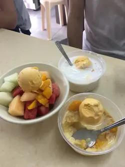 35到嚟到长洲,喺度暴晒真系超热,喺码头附近见到一间甜品店,一睇个餐单真系经济实惠,10几20蚊就有个甜品!但环境有d迫😣👉🏻芒果雪糕椰汁西米露芒果雪糕冇咩味,唔推介,但椰汁西米露几好饮,而且好解学芒果雪糕冇咩味,唔推介,但椰汁西米露几好饮,而且好解渴👉🏻芒果雪糕杂果盘 可以食齐晒所有水果,唔错👉🏻芒果雪糕配芒果布甸同样地芒果雪糕都系冇芒果味,布甸太甜Total $78 味道一般但好平!系长洲来讲算性价比好高👍🏻
