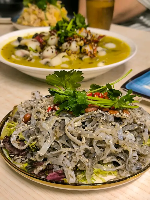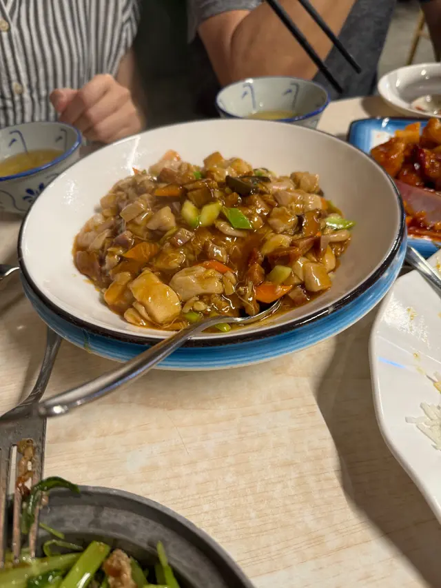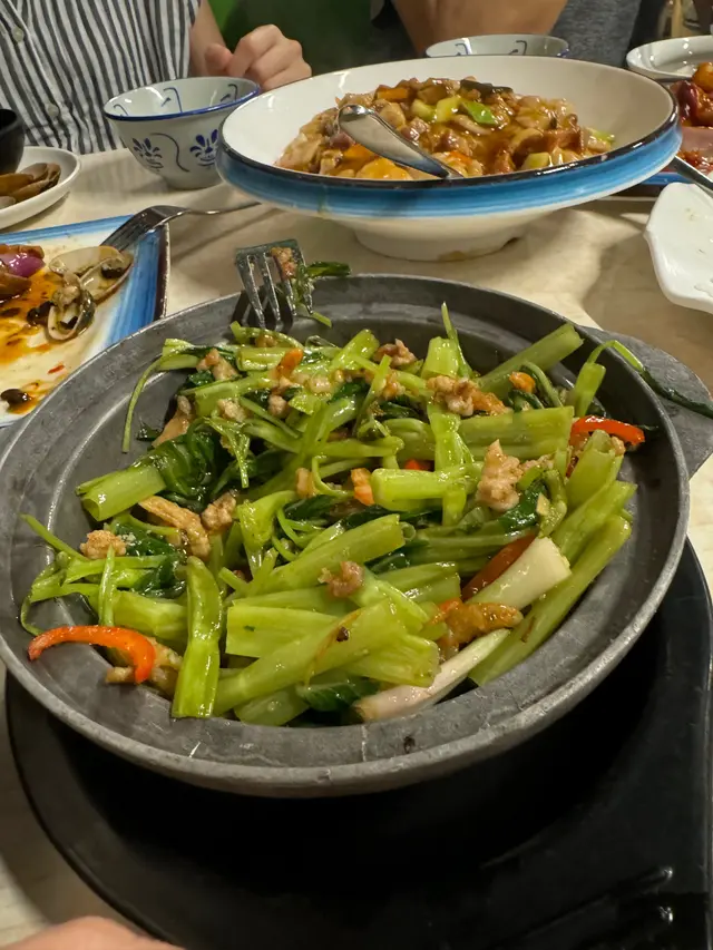香港大排檔,是鑊氣最熾烈的江湖。「小炒王」一上桌,霹靂啪啦的聲響先聲奪人。韭菜花、銀魚仔、蝦乾在猛火下逼出極致乾香,鑊氣穿透每種食材,入口是十足的爽脆酥香,鹹鮮惹味,是絕佳的下酒號角。「蜜椒薯仔牛柳粒」是甜與鹹的完美博弈。牛柳粒外微焦內軟嫩,薯仔外層裹著蜜糖,焦脆香甜,內裡卻粉糯如薯泥。蜜糖的甜與黑椒的辛在口中交織,風味層次分明。「脆皮咕嚕豬頸肉」打破了傳統。豬頸肉先炸出金黃脆殼,肥瘦相間帶有爽勁。酸甜美味的咕嚕汁均勻掛在脆皮上,一口咬下,先是酥脆,隨後是肉汁迸發,酸甜開胃。「黑醋骨」則展現了溫柔一面。選用鎮江香醋,酸甜柔和醇厚,醋香滲入肉質纖維,排骨軟嫩不柴,酸甜滋味溫潤解膩,餘韻悠長。壓軸的「蜜餞鱔球」最見功夫。肥美鱔魚肉厚無骨,炸至外皮微脆,肉質依然彈牙。蜜汁甜而不膩,均勻包裹每塊鱔球,入口甜香與鱔魚的鮮美碰撞,膠質豐腴,令人吮指回味。這五道菜,是大排檔的靈魂之作,每一口都是香港飲食文化中,最生猛活力的滋味。…查看更多