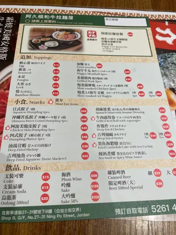 阿久根和牛拉麵屋 (佐敦) 网址: https://s.openrice.com/QrLS0VTC900 地址: 香港佐敦寧波街27-31號地舖 电话: +852 23886959