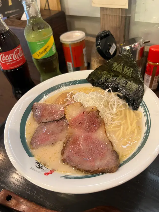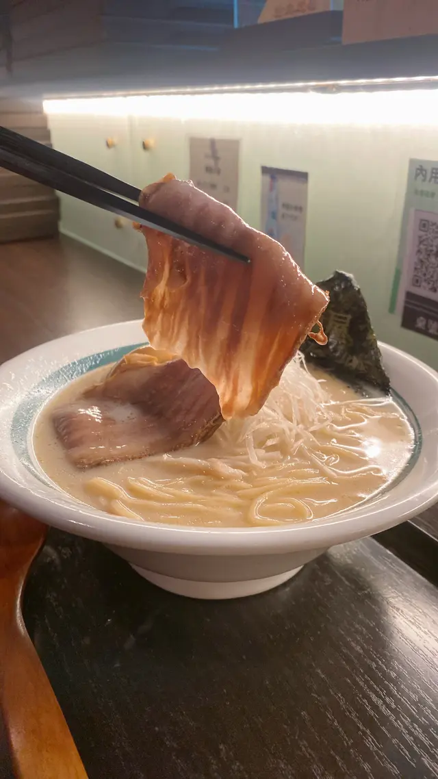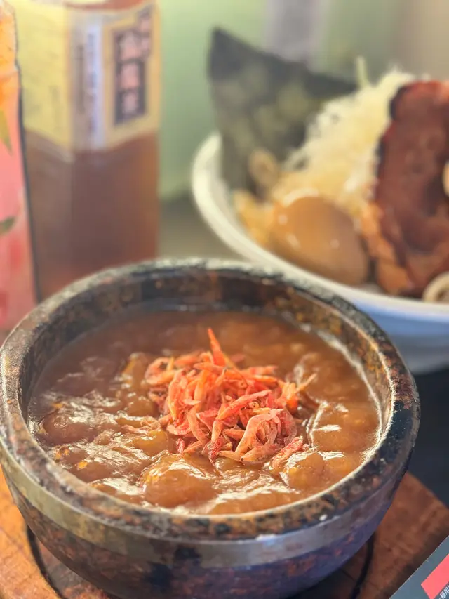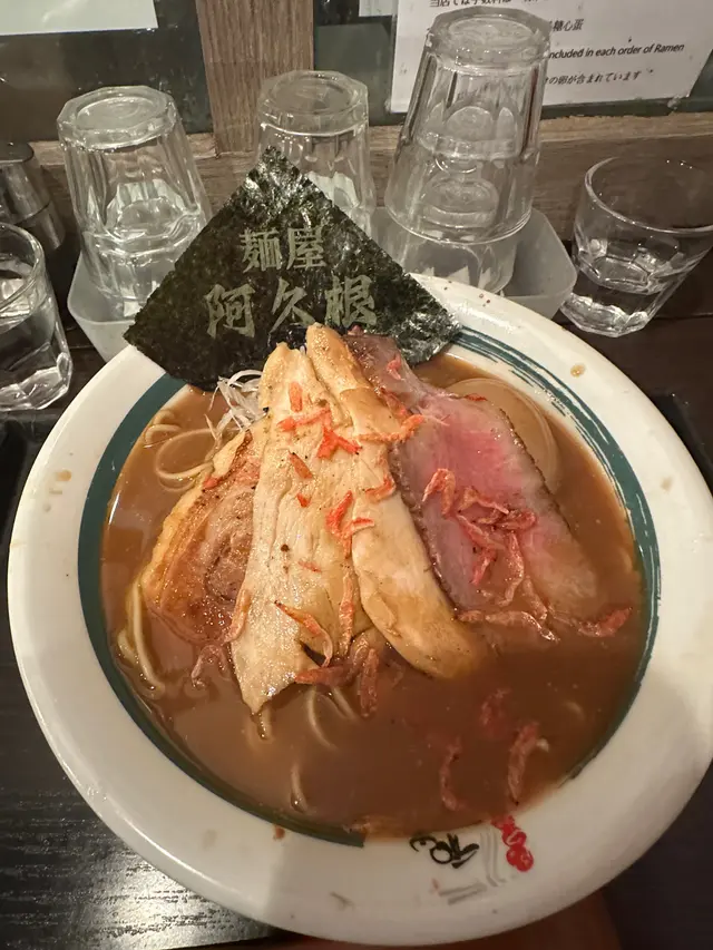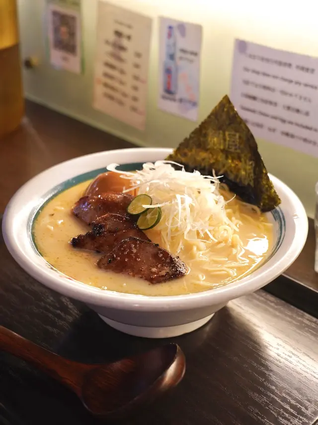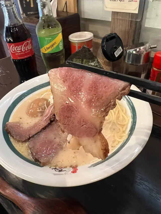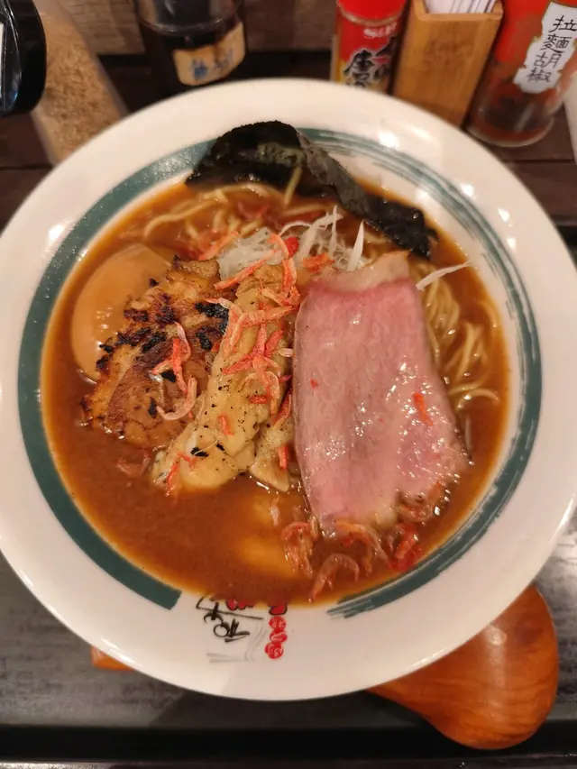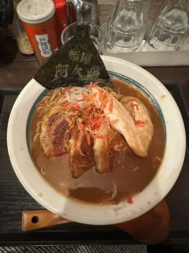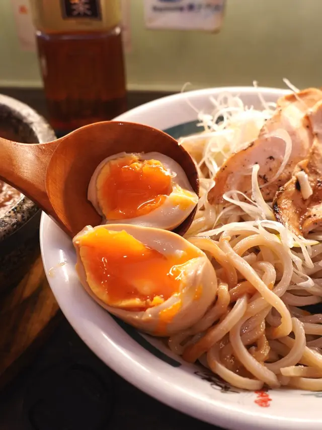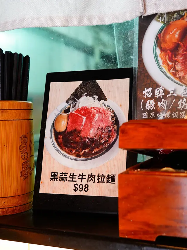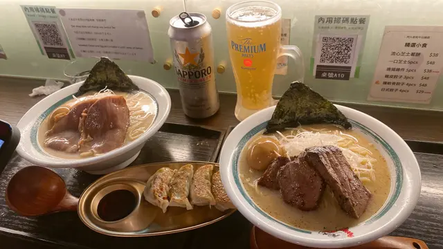 同朋友睇完戲係附近搵食, 隨意入咗呢間日本麵食小店, 餐廳面積不大, 全吧檯座位, 雖然唔算坐得舒服闊落, 反而感覺很有日本地道拉麵小店嘅和風感覺, 食物水準至上, 而且全日免加一, 搶返唔少分數。呢度主打湯拉麵同沾麵, 另有數款小食選擇。沾麵隨餐奉上一張咭牌展示建議正確食用方法, 夠哂貼心!【人氣慢煮安格斯牛小排沾麵】HK$148自選: 濃厚味噌蝦湯味噌蝦湯以石鍋上, 如果可以再熱得滾下滾下就更好。味噌蝦湯味道如menu上所指嘅偏鹹一點, 味道鹹鮮易掛湯, 麵線QQ彈牙; 而主角安格斯牛小排分別有嫩紅刺身同埋炙燒過嘅熟和牛, 前者係咀嚼時食到和牛本身嘅筋絡, 後者口感比較林, 牛脂較出, 另配有原隻軟滑流心糖心蛋同埋京蔥。【味自慢炙燒豚肉沾麵】HK$115自選: 濃厚雞白湯幾塊表面燒得金黃有焦嘅厚炙燒豚肉, 選自五花腩, 肥瘦相間, 肥油層比例較少, 食落唔會感覺太油太膩, 肉質軟林有肉香。雞白湯同樣易掛湯, 濃郁鮮味。享用完沾麵後, 可以示意店員協助加清湯, 品嚐餘下湯汁精華, 因應個人喜歡嘅濃度而免費添加, 將整份沾麵餐盡吃, 滿足又飽肚。…查看更多
