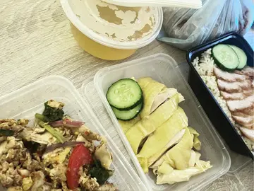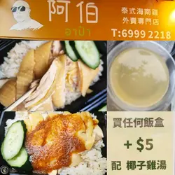 #🔙回头率:9/10🌈性价比:9/10今日突然想食泰菜,经过呢间外卖小店决定一试~本来想私心收藏,但系决定分享(希望唔好加价haha)性价比极高,大家一定要多多支持。*・*:.。..。.:*・*:.。. .。.:*・・*:.。..。.:*・———————————————🍴:海南鸡拼猪颈肉饭😋起初见佢定价53元,觉得有少少贵,而且以为佢系每款肉大概只有三块左右,点知返到屋企打开食物后发现原来系一个𩠌一盒,真系好惊喜!猪颈肉同海南鸡配店舖嘅秘制酱汁,真系超级惹味。份量一定够一个人食🈵 10/ 10🍴:手撕鸡😋称得上为平靓正!只系$15。一整盒都食得出好有诚意~完全唔系马虎之作。🈵 8 /10🍴:配嘢食加$5有细碗嘅椰子鸡汤😋唔好睇佢呢只碗入面只有汤水冇材料,入面有浓浓嘅椰子同鸡汤味道,如果平时屋企冇汤饮,又想饮啖汤水嘅朋友仔一定要试,超值之选,而且唔算细碗!🈵 9 /10*・*:.。..。.:*・*:.。. .。.:*・・*:.。..。.:*・🍽: 阿伯泰式海南鸡专门店 (元朗)📍元朗青山公路34号任安楼地下C号舖…查看更多
