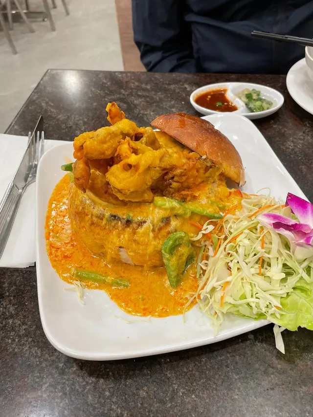最近要on diet,要唔食澱粉質真係有啲困難,唔通次次都食西餐沙律咩。今晚同另一半去咗呢頭搵食,本來想去另一間出名嘅越南餐廳,但見到排晒長龍,入邊啲位又好迫,於是就放棄咗。然後搵到呢一間,上嚟睇吓見到comment都唔錯喎,所以就決定入去幫襯一下。有好多嘢都想試,但係怕食唔晒所以都係叫咗三個餸,而且份量都比一般泰國餐廳多,價錢又唔貴,性價比真係好高。我哋叫咗「馬拉盞通菜」、「蛋黃雞翼」、「鐵板蠔餅」。每碟都好足料啊,我哋兩個食完都好飽。仲有叫左個荔枝梳打share來飲,都好好味呀。「馬拉盞通菜」炒得好惹味,「蠔餅」就比較清淡一啲,所以我都係一啖蠔餅一啖菜咁食,哈哈。「蛋黃雞翼」炸得好脆好香口,而且做成單骨咁整,食起上嚟都好方便。總括嚟講第一次食都好滿意,雖然唔係高級餐廳服務,但啲人都serve得 OK,每次叫到即刻應你同做對應,上菜也好快。還有其他菜式想試,會再幫襯。…查看更多
