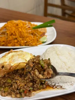 喺旺角街头揾食,竟然俾我撞到间超隐世嘅泰国菜——「阿来泰式地道风味」!餐厅唔算大,坚持用家乡配方,味道正宗得来价钱仲好亲民,绝对系打工仔同学生党嘅福音!✿ ✫ ✿ ✿ ✫ ✿ ✿ ✫ ✿ ✿ ✫ ✿ ✿ ✫ ✿ ✿ ✫ ✿ ✿ ✫🥢泰式湿炒河粉(牛)💰69河粉每条都挂满浓浓嘅泰式酱汁,甜甜哋又带啲微辣,仲有啲芥兰同红萝卜丝增加口感。牛肉份量唔吝啬,嫩滑得来唔会韧,仲有啲粟米仔喺里面捞匀一齐食,真系邪恶到极!食到最尾个底都仲有汁🥢泰式炸虾饼 💰88即叫即炸嘅虾饼,上枱仲热辣辣,咬落去「咔嚓」一声超酥脆!外皮薄薄哋系粉团,点埋个甜酸酱,酸咪咪咁更加带出虾嘅鲜味价钱稍贵🥢串烧沙嗲 💰88沙嗲串烧有鸡牛猪每串都烧到微微焦香,肉质保持到juicy唔会干柴最正系个沙嗲酱,浓稠得来有花生碎嘅口感,香浓带少少辣,仲有啲椰奶香,挂满成串肉食真系超惹味!如果再多两串都仲得啊~🥢蒜蓉包 💰39面包烘到外脆内软,蒜蓉牛油涂到满泻,香喷喷到隔离枱都望过嚟~咬落去𠮶阵蒜蓉味冲击好强烈🥢海南鸡饭 💰59呢个价钱喺旺角真系揾唔到第二间!海南鸡去咗骨,鸡肉超级滑溜,鸡皮爽口唔肥腻,仲有啲啫喱冻喺上面,油饭煮得粒粒分明,鸡油香浓但唔会腻,加左姜黄粉仲包一杯热饮,全日都可以叫✿ ✫ ✿ ✿ ✫ ✿ ✿ ✫ ✿ ✿ ✫ ✿ ✿ ✫ ✿ ✿ ✫ ✿ ✿ ✫总括来讲,阿来绝对系旺角泰菜嘅隐藏宝藏!味道地道、份量足,价钱仲要好贴地,难怪平日夜晚都坐满人。如果硬要挑骨头,就系店仔细细等位耐啲✿ ✫ ✿ ✿ ✫ ✿ ✿ ✫ ✿ ✿ ✫ ✿ ✿ ✫ ✿ ✿ ✫ ✿ ✿ ✫💰人均消费:$100🗺️ 地址:旺角通菜街97号地舖…查看更多