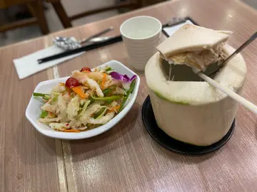 长沙湾呢一边唔系好觉得有好多泰国餐厅,每次想食泰国嘢都会过嚟呢度。今次试咗佢哋嘅椰汁鸡汤,推介,入边鸡肉超级多,椰汁味好香,食完咸嘢饮返呢个汤中和非常好,饮洛口好顺滑!另外叫咗生菜包,不过好似少咗炒米,食落口争啲嘢咁,不过整体来讲都几好食,生菜都几新鲜,个肉仲有啲汁唔会好干跟住仲叫咗个炒粉丝,个味道都几得意,有啲似茄汁,但系又唔系茄汁,叫做suki汁,钟意酸酸甜甜嘅朋友可以试吓呢一个,整体来讲都几抵食!