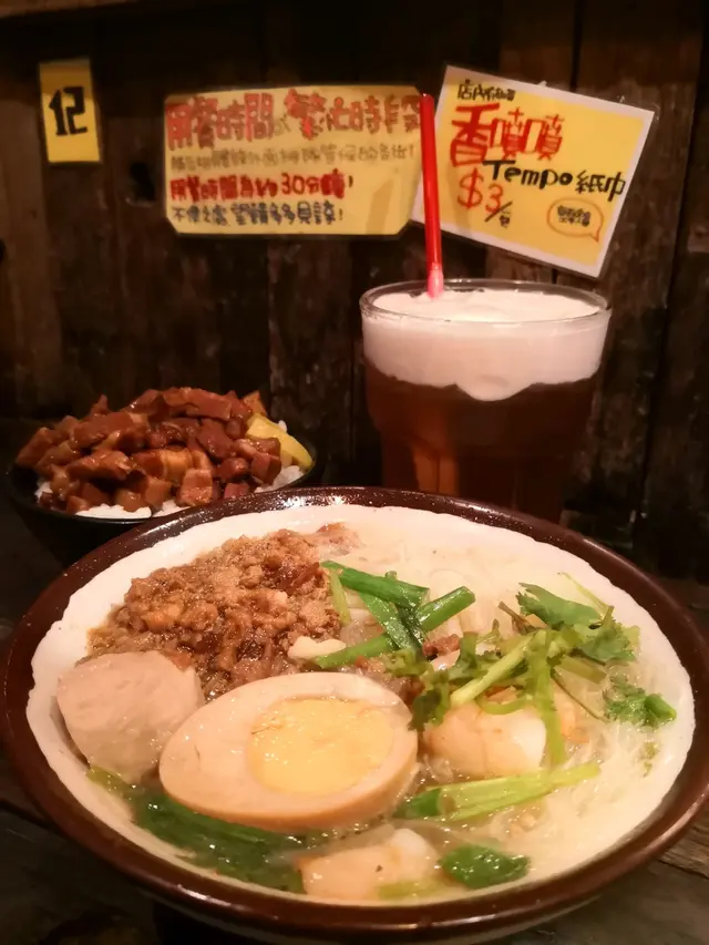 阿元來了曾經風摩一時成為香港最有台味的魯肉飯。用餐時間為半小時。近日知道阿元就黎搬遷到堅尼地城,就趕快黎呢度試下。魯肉飯飯細細一碗,汁量比例好足夠,可以滲透整碗米飯。但魯肉調味較淡, 肥肉比例很少。 整體食落味道比較平淡。台南擔仔米粉台灣肉燥惹味,湯頭較清淡。 米粉屬幼身 透明嘅感覺。另外叫左一杯台式奶蓋綠茶。奶蓋做得好滑身,可惜唔夠綿密。另帶小小香精的味道。但值得一讚是綠茶茶底好好飲。最後埋單走人$89!查看更多