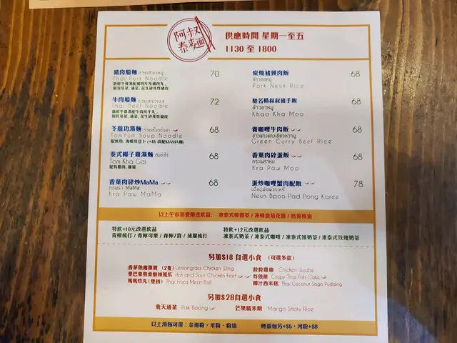 呢日我哋喺元朗揾到一间隐世泰国菜,装修以木色为主,墙壁壁画色彩缤纷,再播住泰国嘅音乐,好似真系去咗泰国咁🤪阿莱烧猪颈肉,厚切大大块,炭香味十足,配上特色嘅酱汁,酸酸辣辣非常开胃🥰椰子鸡汤,份量好多好大碗,味道劲浓郁,每啖都有鸡嘅鲜味,以及椰子嘅香甜,鸡块亦好大件,果然好足料😋冬阴功汤面,酸辣味道唔会太劲,就算唔食得辣都可以好好享受😝海鲜款式亦有好多,有虾、青口、鱿鱼、蟹柳👍🏻我哋当日叫咗河粉,豆卜同河粉吸收晒所有汤汁,每啖都系满满嘅冬阴功味😝阿叔船面(牛),餐厅个名叫阿叔泰面,就梗系要试吓主打嘅阿叔船面🤪汤底好浓,牛肉亦好鲜嫩,而且仲有牛丸、炸猪皮、通菜,几款唔同嘅食材,各有不同口感,一次食到唔同嘅滋味😍泰式玫瑰奶茶,玫瑰奶茶真系好少见,饮落口好香玫瑰花味,同时亦保有泰式奶茶香味,好清新😛…Read More