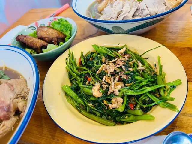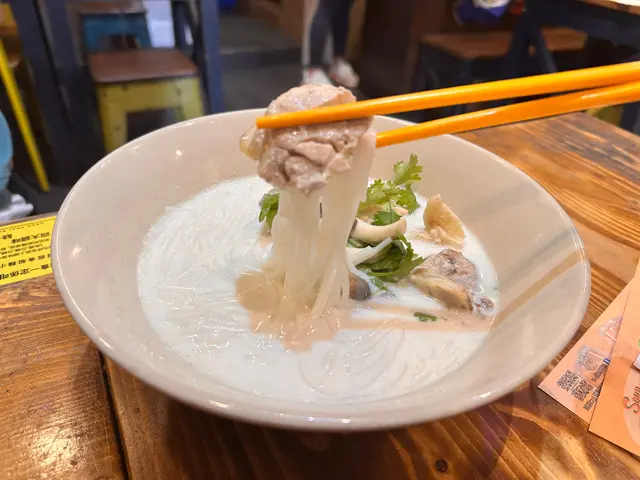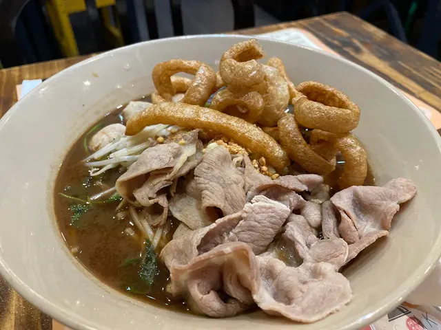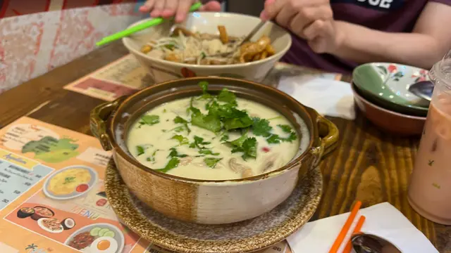 呢日我哋喺元朗搵到一間隱世泰國菜,裝修以木色為主,牆壁壁畫色彩繽紛,再播住泰國嘅音樂,好似真係去咗泰國咁🤪阿萊燒豬頸肉,厚切大大塊,炭香味十足,配上特色嘅醬汁,酸酸辣辣非常開胃🥰椰子雞湯,份量好多好大碗,味道勁濃郁,每啖都有雞嘅鮮味,以及椰子嘅香甜,雞塊亦好大件,果然好足料😋冬陰功湯麵,酸辣味道唔會太勁,就算唔食得辣都可以好好享受😝海鮮款式亦有好多,有蝦、青口、魷魚、蟹柳👍🏻我哋當日叫咗河粉,豆卜同河粉吸收晒所有湯汁,每啖都係滿滿嘅冬陰功味😝阿叔船麵(牛),餐廳個名叫阿叔泰麵,就梗係要試吓主打嘅阿叔船麵🤪湯底好濃,牛肉亦好鮮嫩,而且仲有牛丸、炸豬皮、通菜,幾款唔同嘅食材,各有不同口感,一次食到唔同嘅滋味😍泰式玫瑰奶茶,玫瑰奶茶真係好少見,飲落口好香玫瑰花味,同時亦保有泰式奶茶香味,好清新😛…查看更多