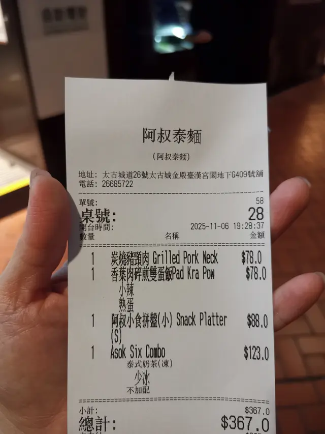 阿叔泰麵 (金殿臺漢宮閣) (太古) 网址: https://s.openrice.com/QrLS0sbuD00 地址: 香港太古太古城道26號太古城金殿臺漢宮閣地下G409號舖 电话: +852 26685722