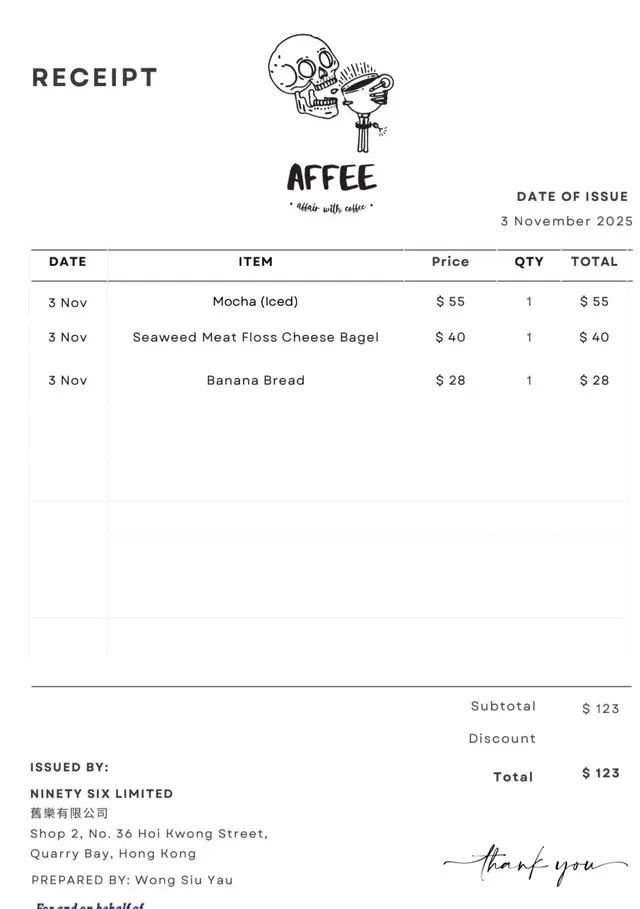 阿啡 (鲗鱼涌) 网址: https://s.openrice.com/QrLS0JTqB00 地址: 香港鰂魚涌海光街26-36號太豐樓地下2號舖 电话: +852 95712902