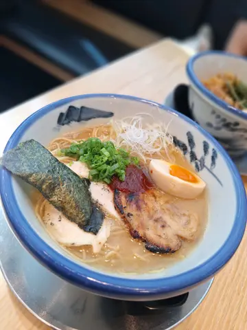 ❰阿夫利拉面❱ 豚骨盐味拉面 🍜📍尖沙咀弥敦道100号The ONE 2楼 i.t orange forest内呢间阿夫利系我第三次光顾,头两次都系拣最招牌嘅柚子🍊塩/酱油,印象唔错,属淡丽风格,柚子香味带黎不少记忆点,配鸡骨汤,今次就试试佢嘅豚骨汤啦!香味 (4.5/5)可能我一早冇睇Menu张图睇得够清楚,原来呢款面系配黑蒜🧄油。有黑蒜油,当然香味扑鼻,而叉烧嘅焦香味亦应记一功,好香。汤 (4/5)豚骨嘅味道其实并唔系好似一兰d豚骨汤咁煲到咁浓郁,不过正好同盐味结合到,取得味道上嘅平衡点,呢吓系好嘅。另外咸度算刚好,如果主打淡丽风的话,我认为咸味仲有稍稍下调嘅空间。黑蒜油嘅量都唔少,食得过瘾不过油腻感稍稍偏重。面条 (4/5)全粒小麦粉造成嘅面条,直身,口感好,爽口又有韧性。最难得系,佢个汤够热之余,个面系由头爽到尾,唔会话浸到腍左。配料 (4/5)猪叉烧都系最传统嘅五花肉卷式叉烧,味道,香味同口感都非常好,焦香味正好同黑蒜互相配合。溏心蛋偏淡,冇点刻意调味,接近系水煮蛋咁,不过吸左d盐汤食上来都还好 。木耳,青葱同红姜丝嘅量洽到好处,由头食到尾都有清爽口感。虽然阿夫利唔系我嘅首选,但系往往每过一排都会想食返碗,因为佢风味清新讨好,份量稍偏少不过如胃口不大嘅时候食就刚好。…查看更多