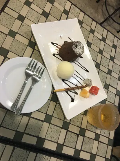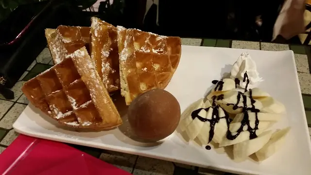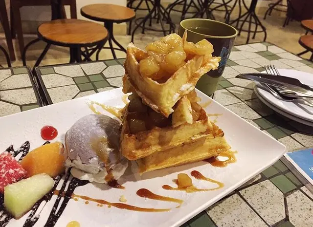 甜品賣相吸引但整體偏甜 Wanda_為食妹等级22014-10-05415 浏览 关注 食完別府覺得仲未見飽,所以去食甜品。店裡古色古香,好懷舊,一入店就聞到好香既窩夫味。於是我地不約而同咁叫左窩夫類。抹茶紅豆窩夫,紅豆份量夠,而且紅豆好大粒好綿。雪糕比較硬,旁邊有件cream,三者合而為一味道剛好。蘋果玉桂窩夫既蘋果醬整得好,黏黏的,蘋果肉煮得綿中帶脆,少少酸,惹味,可惜完全食唔出有玉桂味,今次配左朱古力雪糕,味道幾夾。整體窩夫甜品賣相好靚,份量好足,共有四塊,件件夠厚而外脆內嫩,少食不錯,食足成份就太甜太漏,食完好飽但好口渴,因為紅豆偏甜,雪糕都係,窩夫多食就會覺其實都幾甜。愈食愈有種感覺係好想飲水同好飽,之後就會食得愈黎愈慢。…查看更多以上食记乃用户个人意见 , 并不代表OpenRice之观点。赞好分享甜品賣相吸引但整體偏甜 阿妹糖水 https://s.openrice.com/QrLT049Ka00检举 张贴 评分3味道4环境3服务3卫生2抵食推介美食蘋果玉桂窩夫用餐日期2014-10-04等候时间5 分钟 (堂食)人均消费$50 (晚餐)