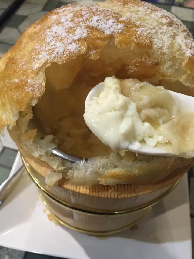 凡事不應只看表面 大食經理等级32016-07-19383 浏览 关注 平日搭車經過,總會看到大大個招牌的阿妹糖水,終於有機會一試!店的裝修是懷舊冰室路線,四周掛了很多舊式海報,用上很古舊設計的餐桌,十分有特式。鮮製菠蘿包酥皮豆腐花一看到就忍不住要叫了!十分新奇,豆腐花上是大大的酥皮。其實不是菠蘿包的皮,有小小失望。是平常喝酥皮湯的那一種,但樣子是十分吸引的!豆腐花熱熱的豆味很濃,本身不帶甜,要自己落糖。把酥皮加上豆腐花,味道咸咸甜甜,確是特別,不算十分好吃,但也可以一試。焦糖栗子窩夫(香草雪糕)這個味道是期間限定的。窩夫一層層疊得很高,十分美觀。窩夫上枱時味道很香,一切,外脆內軟,很不錯。栗子醬味道天然,不會太甜,配上窩夫很夾。焦糖醬和雪糕增添窩夫味道的豐富程度,雪糕的凍和窩夫的熱交替着,很好吃!甜品店外在懷舊,但甜品款式卻很有創意且具水準!比很多只有外在的新興甜品店來得更好呢!…查看更多+ 4以上食记乃用户个人意见 , 并不代表OpenRice之观点。1分享凡事不應只看表面 阿妹糖水 https://s.openrice.com/QrLT0SmGe00检举 张贴 评分4味道4环境4服务4卫生5抵食用餐途径堂食人均消费$40 (宵夜)