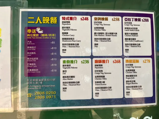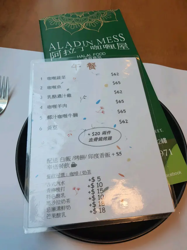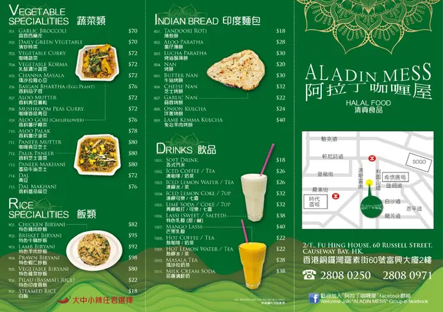阿拉丁咖喱屋 (铜锣湾) 网址: https://s.openrice.com/QrLS0hnq000 地址: 香港銅鑼灣羅素街60號富興大廈2樓 电话: +852 28080250