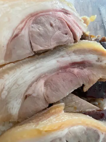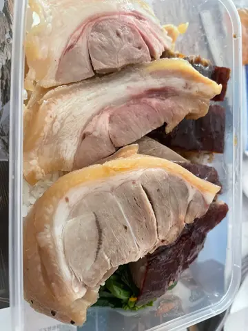唔好同我讲系咁嘅样,我特登上网揾左薰蹄点制作!即系第一嘢煮熟嘅程序冇熟哂就成旧丢去摊冻同切!用deliveroo食依个双拼饭「烧鹅薰蹄双拼饭」,佢一大旧饭硬掘掘,搭条菜心、跟住系一层完全半生熟嘅薰蹄(啫喱状)。跟住铺两片较熟嘅系最上层,烧鹅就摄系个边...盛惠$94蚊
