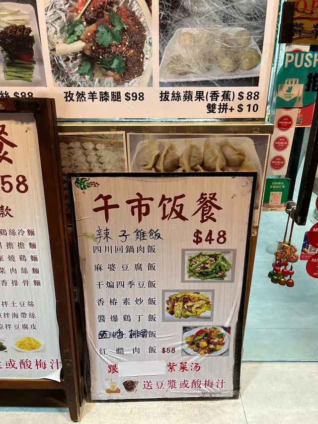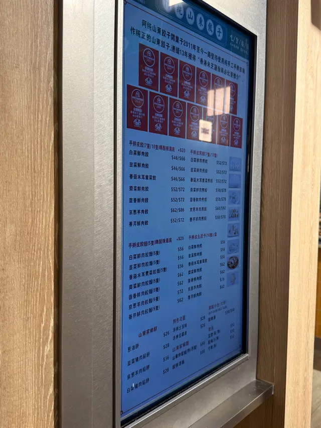 平时行过唔多觉,以为系旧式饺子店,同事讲开先知道佢攞过12年嚟米芝莲荣誉🫣🫨lunch time即刻拉埋同事去试,唔算多人,但见到有外国人入嚟食,我哋叫咗:🥢青岛墨鱼饺子($56八只)🥢洋葱牛肉饺 ($68蚊十只)🥢set lunch芝麻冷面+手拍青瓜+酸梅汤($56)🥢set lunch,排骨面+凉拌海带+酸梅汤($56)🥢葱油饼($4×)个人较欣赏佢嘅饺子,因为系现成手包即叫即做,所以要时间等😅个青岛墨鱼饺外表睇落唔吸引,因为黑色,但系咬落去系爆汁,我成个衣䄂湿晒😆😆而且系有墨鱼嘅弹牙,出面好少食到。 最正有成盒手磨嘅蒜蓉俾你自己落,配醋点去陪坐点饺子,真系正到不得了!另推介个芝麻冷面,好清新嘅汁,配得好好,好开胃😊