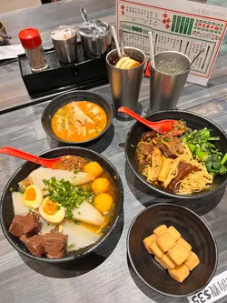 🍜阿美车仔面去大角咀揾完朋友 经过呢间阿美车仔面门面几吸引 便入去食个车仔面因为胃容量有限 同朋友2人纠结了很久要甚么选择 令大家可以试多几款𩠌😂 最后分别点了🥢卤水腩肉 秘制牛腩 生菜配油面 牛腩汁 小辣🥢秘制金钱肚 卤水糖心蛋 猪红 萝卜配乌东 清汤不得不说很有惊喜 搞到想再食多次试埋其他小食😋 🌟首先是乌东 是有口感有点弹牙得那种 不肯定是否日本乌东来货但绝不是平价粉口感果种🌟 卤水腩肉炆得入味 味道刚好不会太咸 腩肉层次分明而且大旧 啖啖肉咁🌟 另一推介是秘制金钱肚 不是很多地方会整的 金钱肚口感嫩滑爽口 喜欢吃金钱肚的朋友必试🌟 辣汁亦是必点 朋友叫了小辣上枱时辣渣是放在汤匙上 食得出辣渣有不少材料一起炒香 好食而且够辣 结果要叫侍应哥哥比多啲辣😂另外卤水糖心蛋、猪红及萝卜都是高质之选 萝卜有2大旧 清甜而且腍度适中 推👍🏻饮品除了冻柠茶果类之外可配支装汽水或茶类 方便而且夹车仔面 小提示:唔想食淀粉质的朋友可以点菜底 呢点好欣赏👏🏻