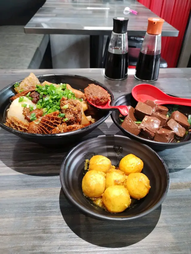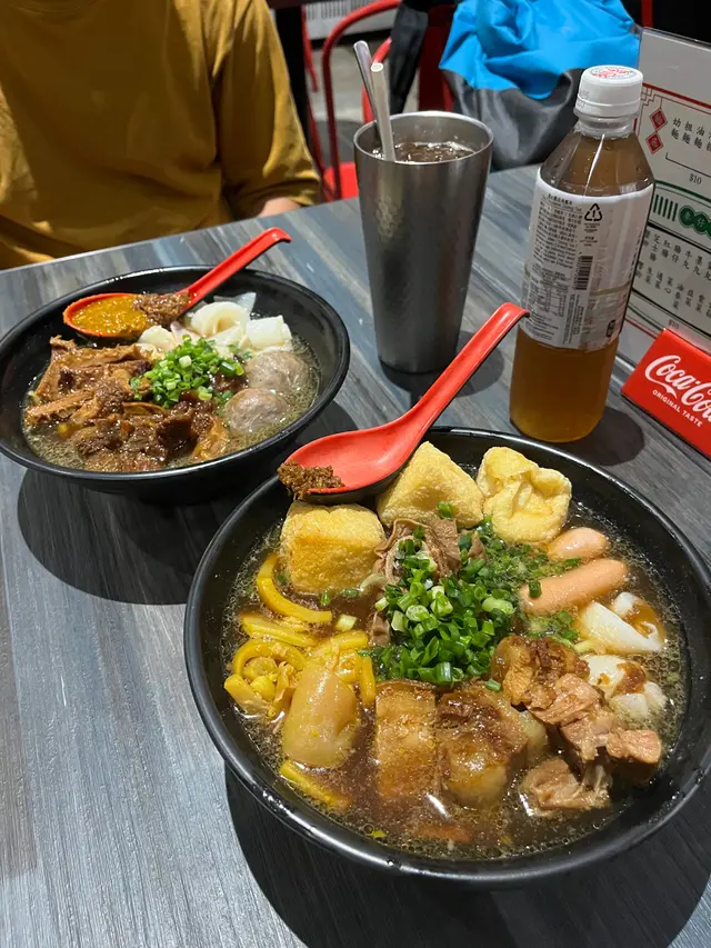 🍜阿美車仔麵去大角咀揾完朋友 經過呢間阿美車仔麵門面幾吸引 便入去食個車仔麵因為胃容量有限 同朋友2人糾結了很久要甚麼選擇 令大家可以試多幾款餸😂 最後分別點了🥢滷水腩肉 秘製牛腩 生菜配油麵 牛腩汁 小辣🥢秘製金錢肚 滷水糖心蛋 豬紅 蘿蔔配烏東 清湯不得不說很有驚喜 搞到想再食多次試埋其他小食😋 🌟首先是烏東 是有口感有點彈牙得那種 不肯定是否日本烏東來貨但絕不是平價粉口感果種🌟 滷水腩肉炆得入味 味道剛好不會太咸 腩肉層次分明而且大舊 啖啖肉咁🌟 另一推介是秘製金錢肚 不是很多地方會整的 金錢肚口感嫩滑爽口 喜歡吃金錢肚的朋友必試🌟 辣汁亦是必點 朋友叫了小辣上枱時辣渣是放在湯匙上 食得出辣渣有不少材料一起炒香 好食而且夠辣 結果要叫侍應哥哥比多啲辣😂另外滷水糖心蛋、豬紅及蘿蔔都是高質之選 蘿蔔有2大舊 清甜而且腍度適中 推👍🏻飲品除了凍檸茶果類之外可配支裝汽水或茶類 方便而且夾車仔麵 小提示:唔想食澱粉質的朋友可以點菜底 呢點好欣賞👏🏻查看更多