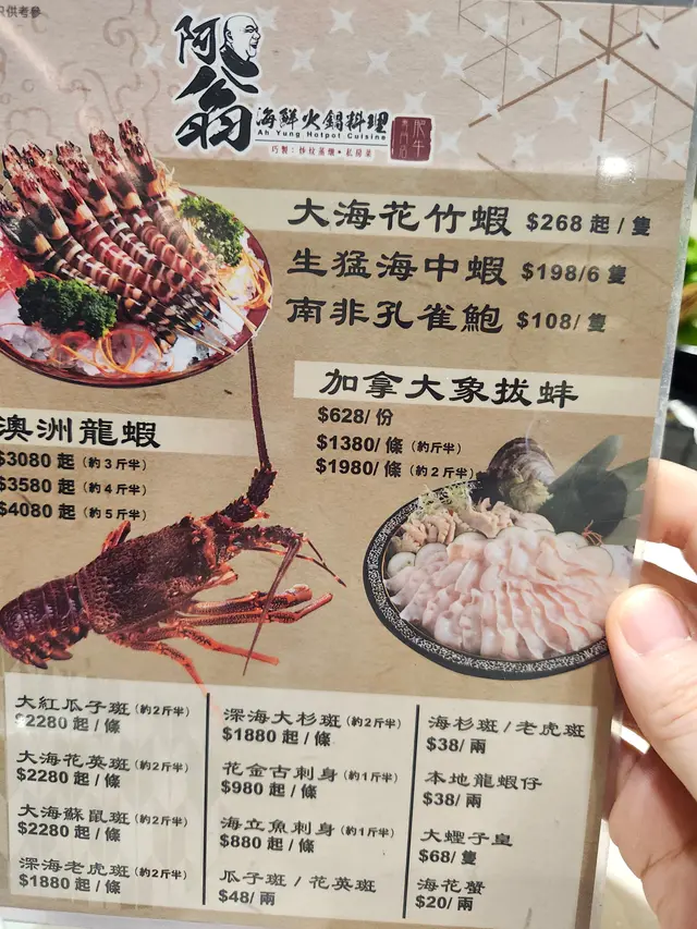 阿翁海鮮火鍋料理 (旺角) 网上订位即赚Rice Dollars 网址: https://s.openrice.com/QrLS0uze500 地址: 香港旺角上海街450-454號慶華商業大廈地舖及1樓 电话: +852 26283588