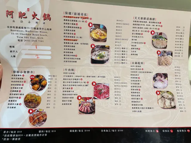 阿肥火鍋 (尖沙咀) 网址: https://s.openrice.com/QrLS0yaK400 地址: 香港尖沙咀漆咸道南53-55號嘉芙中心地牢 电话: +852 23287181
