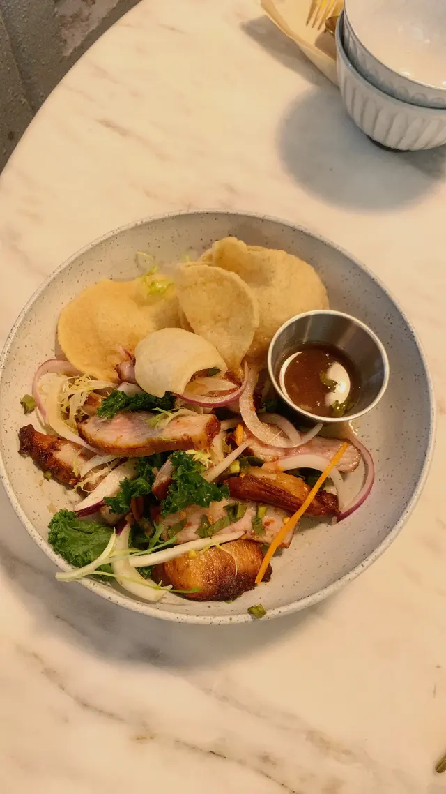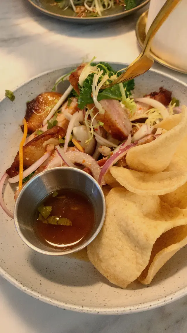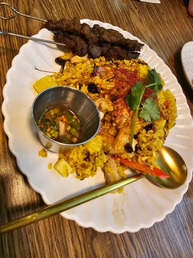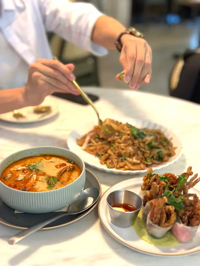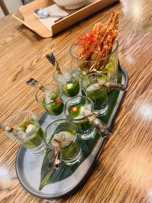 今日去左K11食午飯,見到阿閒泰環境不錯,我們就入去試下。環境寬敞舒適,都好多客人進餐🍽️!我們兩人叫了炭燒帶子冬蔭功、泰式生蝦刺身、椰汁芒果黑糯米飯和伯爵忌廉牛角包!😊炭燒帶子冬蔭功帶子啖啖肉,非常有口感!辣度適中,再加幼粉質地口感十分彈性。泰式生蝦刺身賣相好吸引,每隻生蝦都有一隻小杯盛載,配上生蒜🧄和醬汁好惹味!椰汁芒果黑糯米飯焦糖裝飾好靚好精緻🤩,芒果好清甜,用上軟糯黑糯米,配上香濃椰漿,好味😋伯爵忌廉牛角包,本身我好鍾意食牛角包🥐,香濃伯爵茶既香味,仲配埋雪糕,正!…查看更多