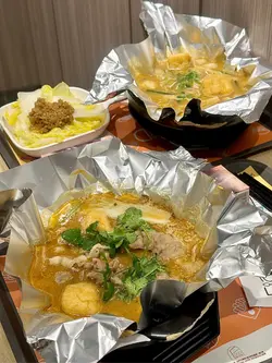 又到左德福美食广场揾食,上次试过陈仔花甲粉嘅香辣汤底唔错,今次就嚟试下佢嘅沙嗲汤底。落完单攞住飞仔等叫号,美食广场一如以往嘅热闹,依然系一枱难求,随意搭枱啦😅⭐陈仔招牌沙嗲花甲粉叫咗份沙嗲花甲粉再加肥牛片,面底有粉丝或米线选择,亦可以加八蚊转稻庭乌冬,上次就试咗粉丝喇,今次就试下米线啦。汤底好香,有花生酱味咸咸鲜鲜仲带少少辣,入面仲有唔少生蒜同炸蒜,令到个汤底更香口。花甲大大只几鲜甜,我呢碗有九只😋米线够滑又爽口,整体感觉唔错🤤⭐麻辣鸡肾主食加配小食可以正价减十蚊,叫咗一份麻辣鸡肾,鸡肾碎上卖相一般。呢份鸡肾都几辣,辣椒籽超多,留返畀爱辣嘅朋友搞掂佢啦😆⭐香辣莲藕片另外仲加咗份藕片,呢个香辣对我嚟讲辣度就啱啱好,莲藕片好爽脆,辣得过引。⭐蜂蜜绿茶面食免费跟纸包饮品或者罐装汽水,仲可以加八蚊拣新出嘅鸭屎香柠檬茶沙冰,是晚想饮下蜂蜜绿茶就拣咗呢款道地嘅纸包饮品😝眼阔肚窄叫太多食唔晒😅两份小食大部分都畀晒朋友搞掂佢,哈哈,几时有个包底嘅朋友都好重要。…查看更多