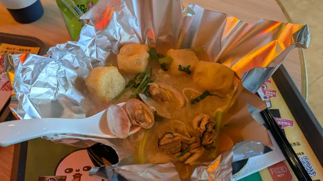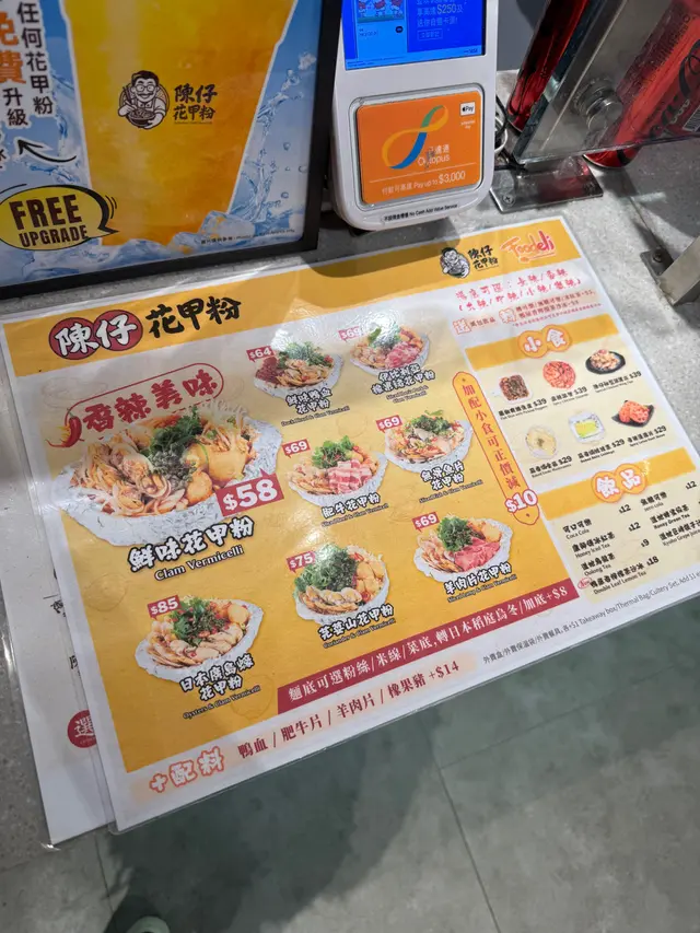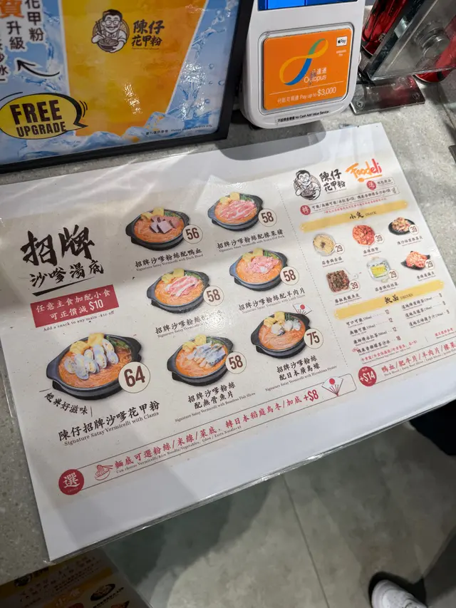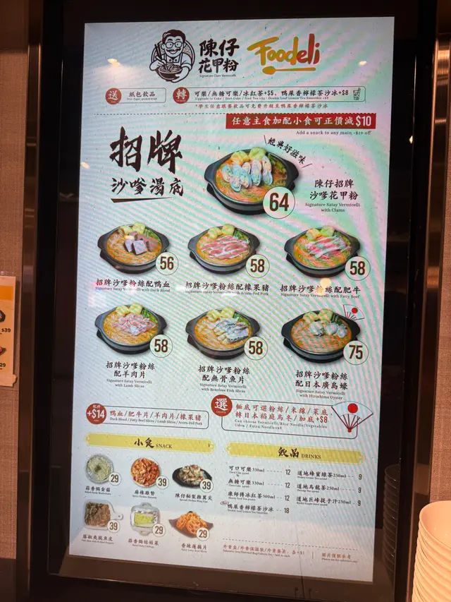 又到左德福美食廣場搵食,上次試過陳仔花甲粉嘅香辣湯底唔錯,今次就嚟試下佢嘅沙嗲湯底。落完單攞住飛仔等叫號,美食廣場一如以往嘅熱鬧,依然係一枱難求,隨意搭枱啦😅⭐陳仔招牌沙嗲花甲粉叫咗份沙嗲花甲粉再加肥牛片,面底有粉絲或米線選擇,亦可以加八蚊轉稻庭烏冬,上次就試咗粉絲喇,今次就試下米線啦。湯底好香,有花生醬味鹹鹹鮮鮮仲帶少少辣,入面仲有唔少生蒜同炸蒜,令到個湯底更香口。花甲大大隻幾鮮甜,我呢碗有九隻😋米線夠滑又爽口,整體感覺唔錯🤤⭐麻辣雞腎主食加配小食可以正價減十蚊,叫咗一份麻辣雞腎,雞腎碎上賣相一般。呢份雞腎都幾辣,辣椒籽超多,留返畀愛辣嘅朋友搞掂佢啦😆⭐香辣蓮藕片另外仲加咗份藕片,呢個香辣對我嚟講辣度就啱啱好,蓮藕片好爽脆,辣得過引。⭐蜂蜜綠茶麵食免費跟紙包飲品或者罐裝汽水,仲可以加八蚊揀新出嘅鴨屎香檸檬茶沙冰,是晚想飲下蜂蜜綠茶就揀咗呢款道地嘅紙包飲品😝眼闊肚窄叫太多食唔曬😅兩份小食大部分都畀曬朋友搞掂佢,哈哈,幾時有個包底嘅朋友都好重要。…查看更多