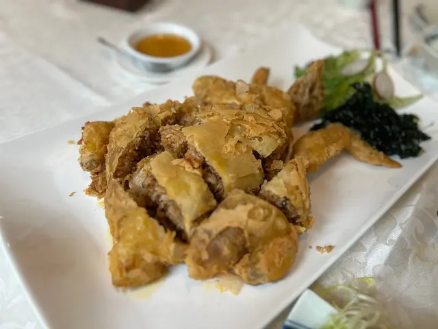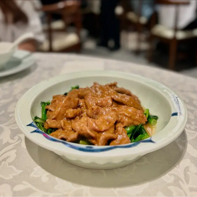 頭抽鷹鯧魚片 價錢好貴嘅手工菜。原本點嘅時候內心都有啲肉赤,但係食落又好滿意。魚肉大大嚿,質地爽滑,配以頭抽同喼汁嘅味道,好惹味。👌🏼汕頭煎蠔烙:炸得頗鬆軟,唔錯。🤔炸普寧豆腐豆腐炸得好脆,不過就冇豆香味,味道好淡,麻麻地。附送左一碟青醬,係微微嘅酸味。👌🏼沙茶牛肉炒芥蘭:正常味道。:(糖醋麵:普普通通,外層唔夠脆。👌🏼青橄欖排骨湯:青橄欖帶來少少鹹鹹酸酸嘅味道。整體嚟講,大部分菜式都okay,特別鍾意鵝肝同煎鷹鯧魚片。不過上菜速度好快,枱面又好細又好迫,整體感覺食得好趕。…查看更多