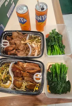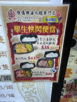 咁啱去开新蒲岗做嘢,做完嘢有啲肚饿,想买啲嘢返屋企食吓。去到崇龄街见到有间,陈仪兴卤水鹅专门店。见好耐都冇食卤水鹅,买两份返去同屋企人分享。仲有学生快闪便当。招牌鹅三宝鹅肠弹牙有嚼劲、鹅肝滑不腻,卤汁用陈年秘方,八角桂皮香气扑鼻,甜咸刚好,配白饭一扫而光。卤水鹅肉饭薄片鹅肉淋汁后湿润多汁,唔柴唔腥,咬落去油香四溢菜芯/芥兰追加郊外油菜,清脆爽口,解开卤味油腻,两款菜心都炒得火候到位,保留鲜绿。跟餐樽装汽水冰凉提神,完美收尾。