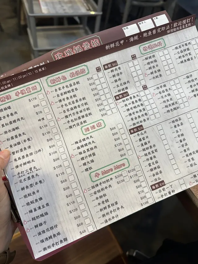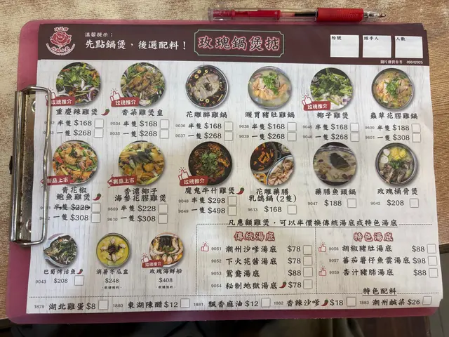 在新蒲岗街头寻味,发现这家性价比惊人的「陈仪兴玫瑰餐厅」。这里没有华丽的装潢,却以实惠价格和真材实料赢得街坊口碑。最难得的是,这里坚持"三不政策":不加一、不收茶芥、免酱油费,让食客能毫无顾忌地大快朵颐。招牌青花椒鲍鱼鸡煲(半只)一上桌就香气四溢,鸡肉嫩滑入味,鲍鱼爽弹鲜甜,青花椒的麻香渗透汤底,微辣带鲜,越煮越浓郁,单是这个煲已值回票价!店家还赠送餐菜,诚意十足。 手切肥牛(细)虽然是"细"份,但份量十足。牛肉油花分布均匀,只需涮数秒,肉质柔嫩多汁,牛香浓郁。鬼马墨鱼胶是店家的创意之作,将墨鱼胶酿入油炸鬼中,外脆内弹,双重口感令人惊喜。鱼皮饺和杂菌饺皮薄馅靓,尤其是杂菌饺,内馅香气扑鼻,素食者也会爱不释手。转战火锅环节,蕃茄酱薯仔鱼云汤底令人眼前一亮。汤头以新鲜番茄熬制,酸甜适中,加入薯仔增加绵密口感,鱼云(鱼鳔)处理得当,毫无腥味且入口即化。这款汤底特别适合搭配手打鱼面,面条吸饱汤汁后,每一口都充满海洋的鲜甜。蔬菜方面,莴荀和娃娃菜都新鲜爽脆,在浓汤中轻涮后更显清甜。店家对食材的把关严格,连配菜都不马虎罗汉果茶和金银花茶都是店家自家煲制,不添加人工糖分。罗汉果茶甜度自然,润喉生津;金银花茶清香扑鼻,清热解毒,是打边炉的最佳拍档。这两款养生茶饮不仅解腻,更能中和火锅的燥热,体现了店家对食客健康的贴心考量。这顿火锅食材新鲜、份量足,加上免收杂费,真正「抵食夹大件」。如果想找高性价比的潮州火锅,陈仪兴绝对是隐世好选择!…查看更多
