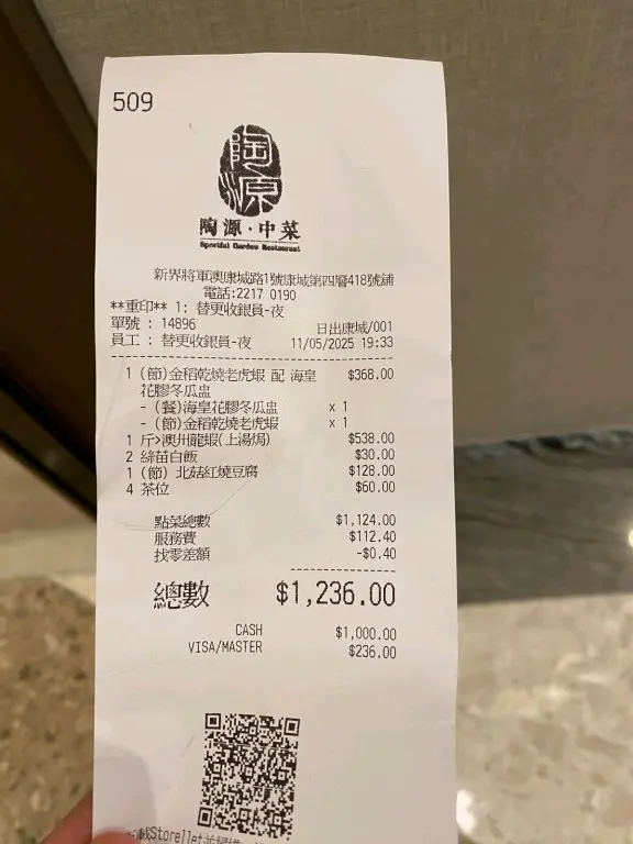 陶源中菜 (将军澳) 网址: https://s.openrice.com/QrLS0V6eA00 地址: 香港將軍澳康城路1號The LOHAS康城4樓418號舖 电话: +852 22170190