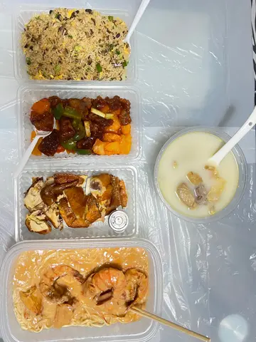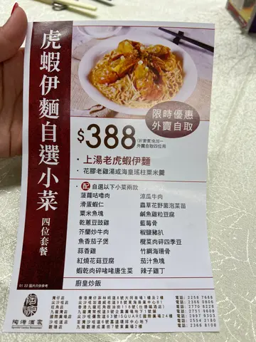 继续推介外卖超抵优惠, $388四个人嘅份量都绰绰有余!!花胶老鸡汤首先要赞汤头非常浓郁,亦都冇鸡油浮面,鸡汤好补,饮落鲜甜,鸡件同花胶清楚易见,拎到返屋企可以自己翻热一下。上汤老虎虾伊面面底好多,但同时老虎虾肉嘅份量亦唔少,大只得惊人,外壳有预先煎香过,虾肉爽甜弹牙,稍微捞一捞上汤,伊面滑溜软身。厨皇炒饭米饭炒得分明,一粒粒翠玉瓜,冬菇粒,配上鸡蛋丝和香葱,调味适宜,超香,食咗足足一碗。菠萝咕噜肉咕噜肉虽然有少少放凉左,但炸粉唔厚,肉质爽嫩,肥瘦相间,加上酸酸甜甜嘅菠萝粒,送饭一流。蒜香鸡份量非常足够,而且食落相当香口,鸡皮油脂唔多,鸡肉亦够嫩滑,虽然蒜粒唔算好出,但亦都可以点上额外配的甜豉油。$388嘅套餐,有菜、有汤、有饭、有𩠌,四人食都绰绰有余,小菜更加有超过10多款可以选择。大家快啲去落单啦!!!…查看更多