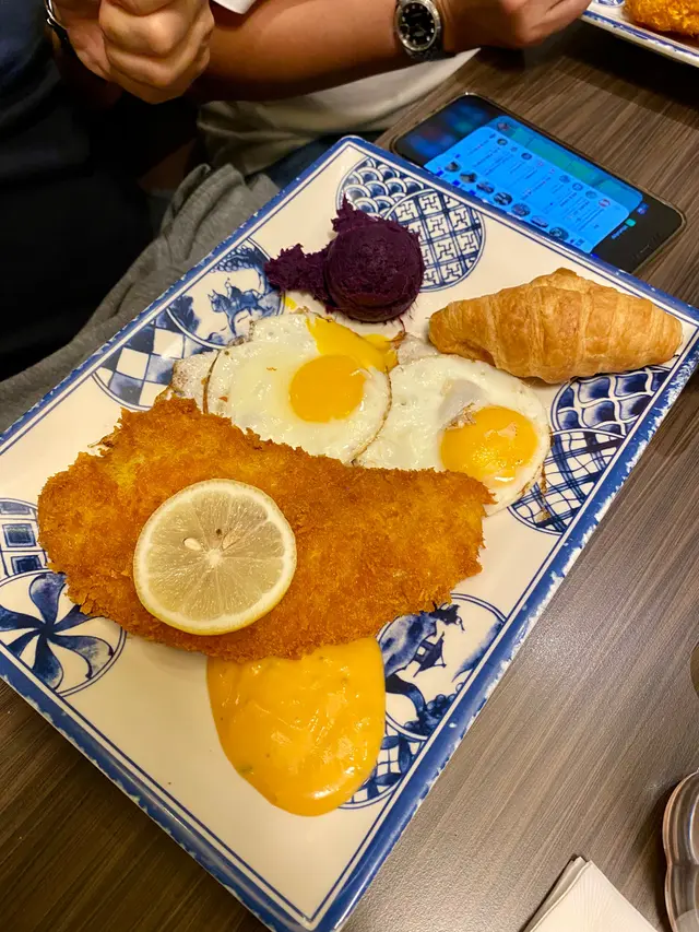 牛扒 食落呢偏稔,可以話有少少霉嘅,中環早餐嚟講呢佢正價50蚊, 但係如果俾現金可以減3蚊,即係47蚊。 嗯,內有腸仔一條同埋一隻雞蛋 又有紫薯,咖啡奶茶真係麻麻地,咖啡冇味奶茶就較差奶差茶葉,跟白麵包,多士加一蚊人流唔多既時候,多士都比較求漢,方亦都比較偏窄唔好坐。第2日走去附近貳號冰室,牛扒有味道,唔係偏稔質素都唔錯。 配上兩隻烚蛋,多士唔需要另外收費,冇咗腸仔價錢貴五蚊,53蚊,奶茶唔錯,有香味,鍾意飲太興奶茶嘅佢都近似。坐梳化位座位都係偏窄唔好坐,坐普通凳好過…查看更多