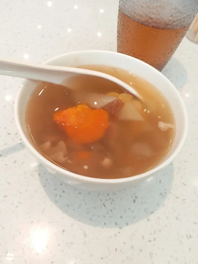 第一次嚟到呢間食店試食,先至知佢主打晚市,所以午市選擇唔多,嚟到嘅時候,已經有咕嚕肉同蒸排骨飯賣哂,於是我揀咗韮至叉燒炒蛋飯,送湯及熱飲。起初我仲以為係炒飯,飯嚟到先知唔係,係炒蛋飯,而唔係蛋炒飯,兩字擺位前後不同,造成結果完全不同,可見中文博大精深。先嚟奶茶及例湯,奶茶略為細杯,味道可以,但同好多食店一樣無啡糖,只有白糖。湯唔只味道夠,材料亦多,有青紅蘿蔔,蓮藕亦大大嚿,見到隔離嘅湯有粟米。炒蛋飯嘅蛋同叉燒份量幾多,尤其是叉燒,份量比燒味飯嘅叉燒更多,惟獨韮王太少,叉燒明顯煎過才落蛋,而且所用嘅叉燒真係用明火燒過於而唔係有啲食店用叉燒醬汁醃煮就當係叉燒,所以食到焦香味,可惜質地偏硬偏柴,浪費佢嘅香味,而豉油亦只係普通鹹豉油,而唔係製過嘅甜豉油,實在有點失色。但$45有湯有熱飲,而且叉燒份量亦多,個湯亦唔係揸流灘,所以絕對可以用一個抵字去形容呢餐飯。…查看更多