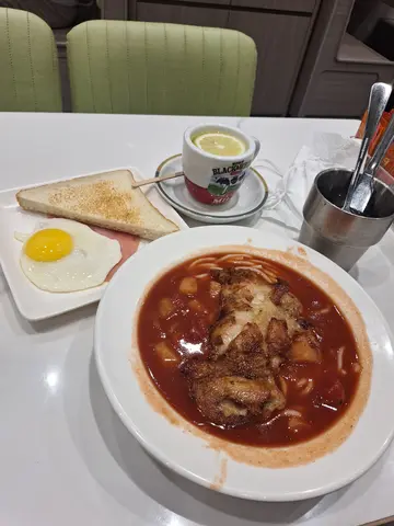 好少食茶记,午餐时段7成满座,多士烘得好脆加上太阳蛋汁,好味道,鸡扒炸过好香脆,蕃茄浓汤好杰身,味道不错,叫左杯热柠水解腻,侍应姨姨们几有礼貌#陆号冰室 #茶记体验
