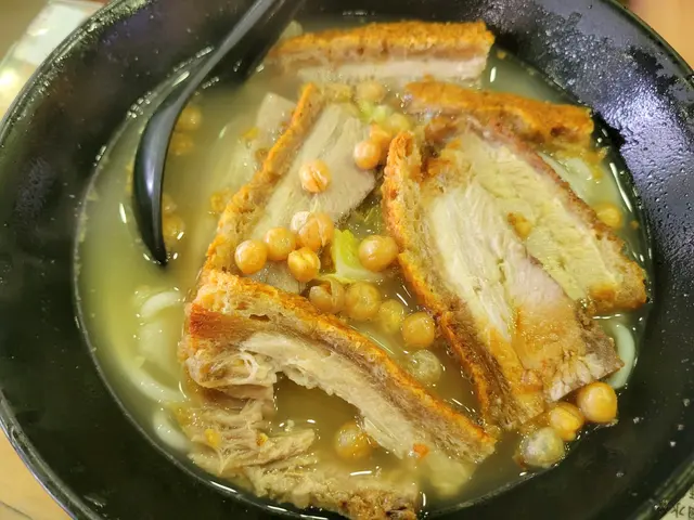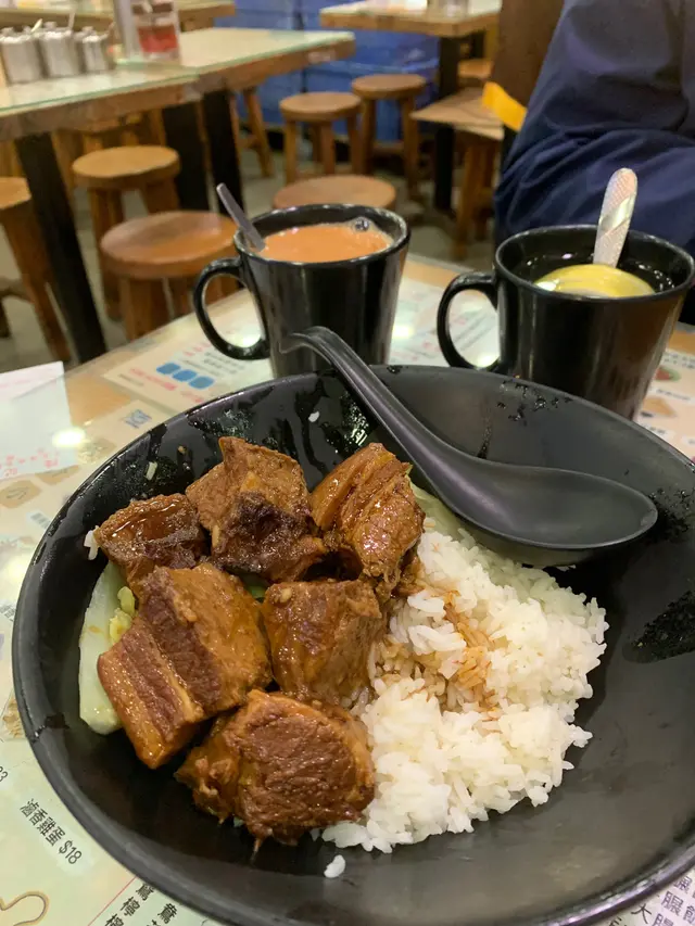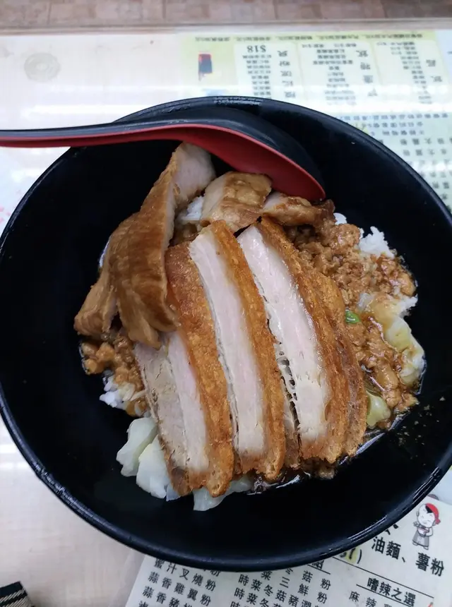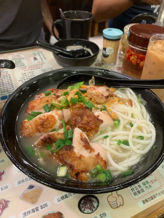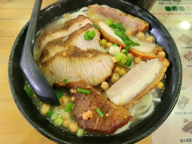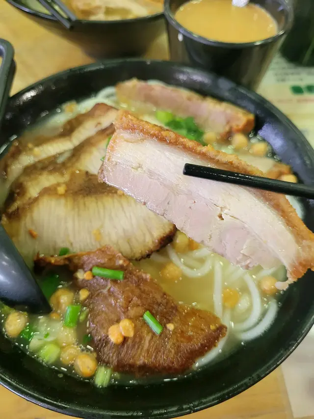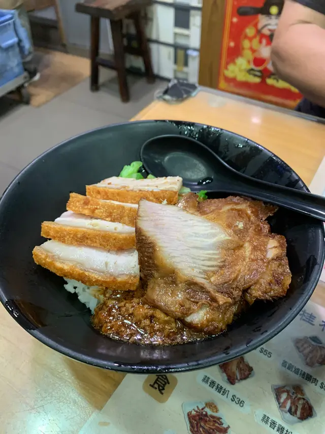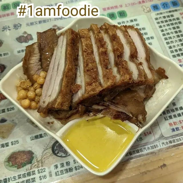 元朗出名美食多🥢每個元朗街坊心目中都有各自的心水飯堂名單📌陸記在元朗紮根多年,在不少街坊心中當然亦榜上有名😇———————————————————————所謂雙豬其實是豬頸肉和鍋燒肉的雙拼🐷各有4片,份量上算是可以👌🏻豬頸肉肉質爽彈,亦有一定厚度👍🏻至於店家一再強調的獨家滷水味道就並未算驚艷😗與一般常見的味道大同小異,恕我未能品嘗到其特別之處😅鍋燒肉外型類似燒味舖的燒肉🐽不過較為薄切🙂豬皮部分十分香脆💥即使浸湯後依然保持脆口😋肉質偏瘦😌不會像燒腩仔般肥膩,因此質感亦會較韌,未夠鬆化🤔桂林米粉與常見的米粉不同,粗身得比米線還要粗🤣但又比米線爽口彈牙😙湯底調味非常清淡,最突出的就是炸蒜的味道😂———————————————————————這碗雙豬米味道比較家常🏠各方面都中規中矩,對我這個區外人來說就未有太多記憶點😅未算太值得跨區到訪。…查看更多