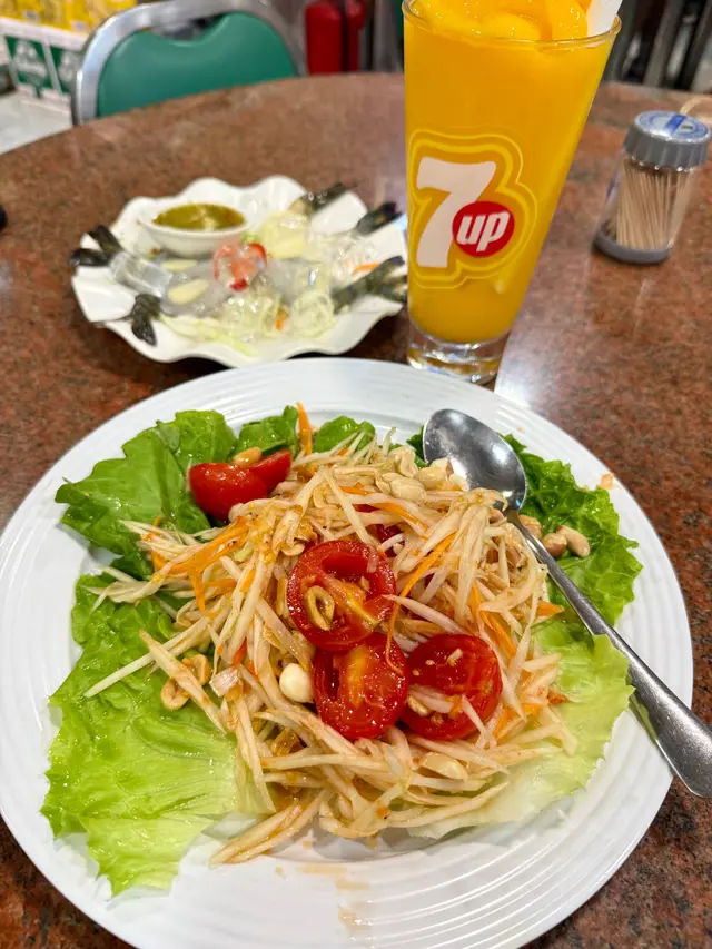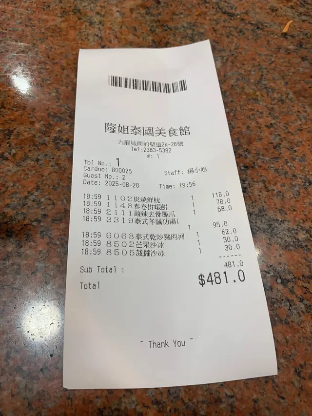 聽講🚇九龍城呢間隆姐泰國美食館🇹🇭係由真正泰國人隆姐開嘅,用嘅全部都係泰國正宗🥰配料,食材新鮮又地道,所以今次就揀咗佢👍!餐廳屬於舊式泰國菜館格局🏮,地方雖然唔算好大,但係幾有地道嘅🇹🇭泰國街邊小店風味🤤。入面職員都係泰國人👨,而且服務親切😊,晚市仲唔收加一服務費(每人只收$2💰)。首先嚟咗兩杯消暑飲品🥤,椰子沙冰清香甘甜,椰味濃郁🥥,冰涼透心,呢個天氣嚟一杯真係好舒服😌!跟住就係經典嘅珍多冰🍧,五顏六色嘅配料加上椰汁🌈,賣相豐富,食落去每一啖都有驚喜👏,口感層次分明。然後就係招牌椰汁雞湯🥣,用鐵鍋盛裝,底下仲有酒精爐保溫🔥,湯底濃郁香滑,椰汁味道清香唔會膩🥥,雞肉嫩滑有咬口,配埋香茅同草菇,整體味道層次豐富,暖胃又開胃😋!海南雞係今日嘅重頭戲🍗,係門外已經見到佢卦住勁吸引🐓,叫咗半隻份量幾足,入口雞肉質地軟嫩,🐔皮薄肉滑,配埋特製蘸醬,酸甜適中,好開胃👍!而泰式炒蝦金邊粉🍝都幾有驚喜,金邊粉爽滑有韌性,配埋新鮮🦐大蝦,鑊氣十足,味道酸甜微辣,口味正宗🇹🇭。我哋叫咗芒果椰汁糯米飯做甜品🥭,芒果香甜多汁,糯米飯好軟糯🍚,加上椰汁調味恰到好處,😍甜而不膩,係泰式甜品嘅經典之作。最後餐廳仲加碼送糖水🍠,係紫薯椰香西米露,入面仲有啲香甜嘅粟米粒🌽,口感層次好豐富。總括嚟講,隆姐泰國美食館價錢實惠💰,味道正宗🇹🇭,份量十足👍,係我下次會再來嘅泰國菜館之一!…查看更多