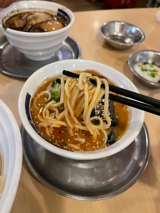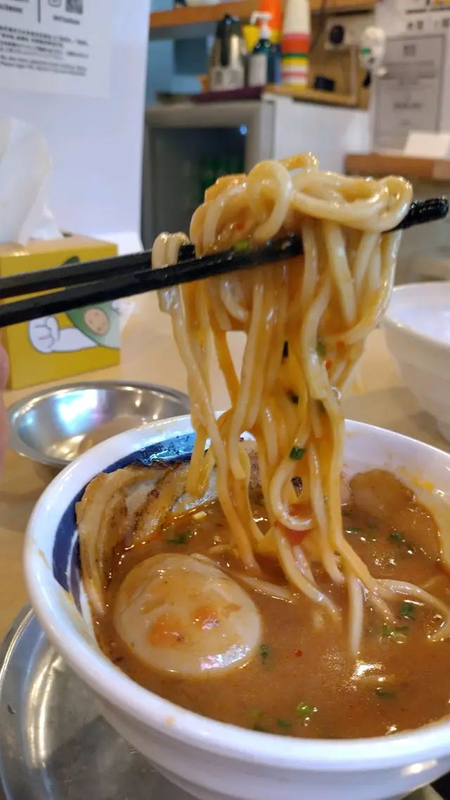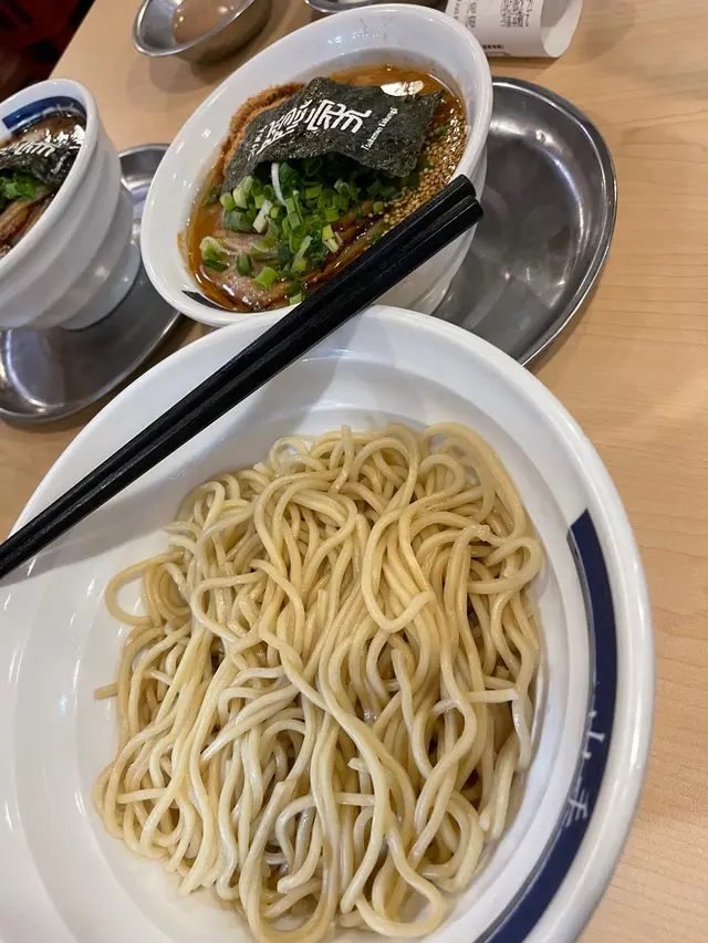 隠家拉麵工場 |深水埗今日行完金山,再搭南來到西九龍中心搵食,好想食拉麵,就試下呢間餐廳!有三款湯底揀白-豬骨湯底 黑- 黑蒜湯底紅- 蕃茄湯底今日我食白,朋友食黑,因為係沾麵所以湯底會比較濃郁,如果大家怕太濃味就唔好成個面全部都沾湯,但我個人比較鍾意食濃味,我就全沾覺得剛剛好!黑蒜湯底會更濃味,好香蒜味道,好足料!每個湯麵會跟兩片日式叉燒,同一隻糖心蛋,叉燒好入味好食,蛋更係流心的,好滿足的一餐❤️深水埗欽州街37號西九龍中心7樓7083號室…查看更多