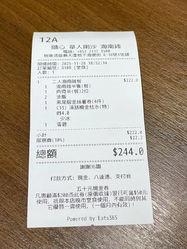 隨心華人喇沙海南雞 (鲗鱼涌) 网上订位即赚Rice Dollars 网址: https://s.openrice.com/QrLS02YqD00 地址: 香港鰂魚涌海堤街6-16號龍景大廈地下4號舖 电话: +852 21173588