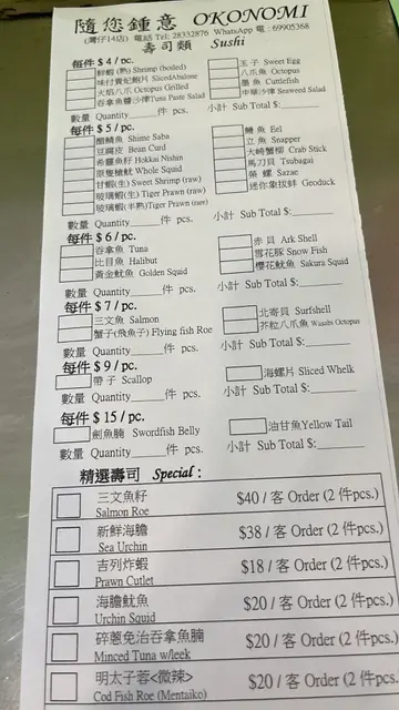 {随你钟意}屹立铜锣湾好多年,主打平价寿司外卖🥢喺依度食寿司唔需要太高期望,始终一分钱一分货,想平食寿司过口瘾就会嚟食🤫✴️手卷\小卷\寿司✴️手卷同款买一送一,叫咗三文鱼同蟹肉沙律~馅料系多嘅,食到底都有,不过紫菜就好淋,要用力扯开先得😅食依个手卷抵过华御结,所以系合格的👌🏻蟹柳小卷就好正常,无咩特别可言,不过size系偏细粒的🤔寿司叫咗带子、玻璃虾、螺肉,刺身就无咩味道,口感都有嘅~反而嚿饭就麻麻,好散好松🍣依度买单都系$100左右,价钱反映质素,平价寿司店不能期待太多😂查看更多