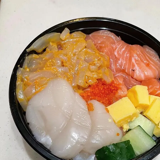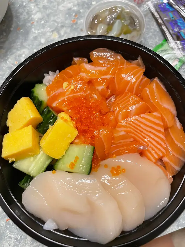 櫻花三文魚、帶子、海膽魷魚丼