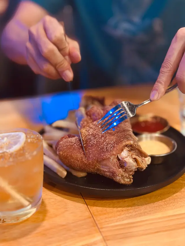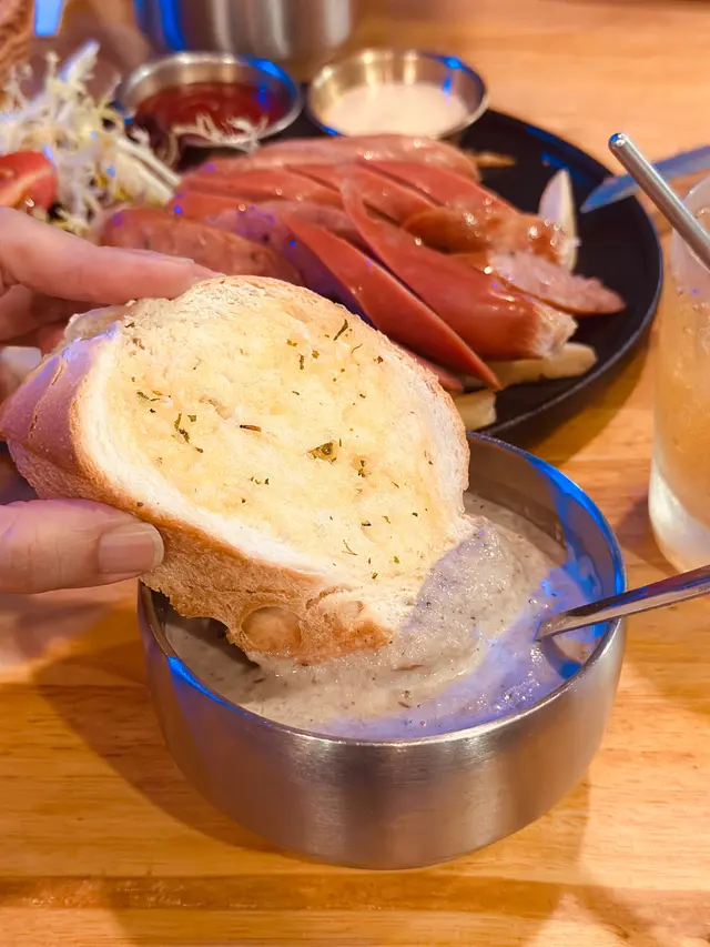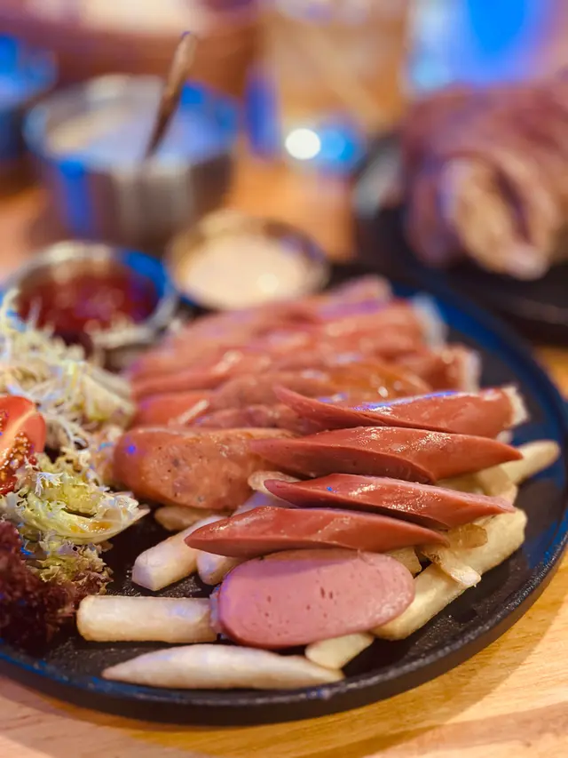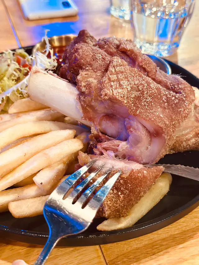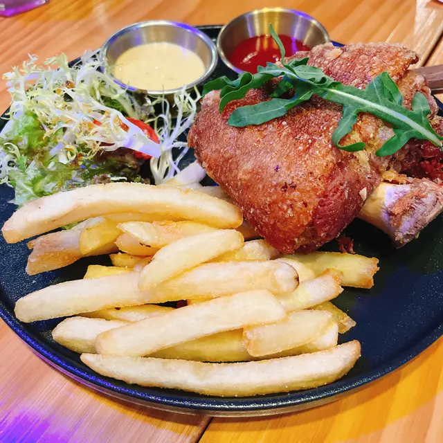 ➡️原隻德國咸豬手配薯條 柚子汁沙律跟蜜糖芥末醬大大隻好吸引,外皮鬆脆度坐係對面都聽到,一切開已經感受到皮脆肉嫩,配上即炸薯條沙律,完美配合 。➡️德國腸拼盤配薯條多款德國🇩🇪腸,有黑椒腸,豬肉腸,配啤酒一流,不過當日揸車無得飲🙂‍↔️+$28可包餐湯及蒜茸包蘑菇忌廉湯超濃郁,粒粒蘑菇口感 。老闆話讚好專頁可以免費升級飲品🍸➡️隨時有驚喜特飲見到已經有驚喜,打卡一流,非常有誠意,將試管🧪果汁倒入杯內飲料立即變色😱💫隨意薄荷朱古力特飲飲過最好飲嘅薄荷朱古力🍫唔會互搶味道 。整個晚餐體驗好開心😁老闆介紹餐廳招牌菜,午餐及晚餐優惠 。同顧客互動極具人情味,街坊朋友可以試試查看更多