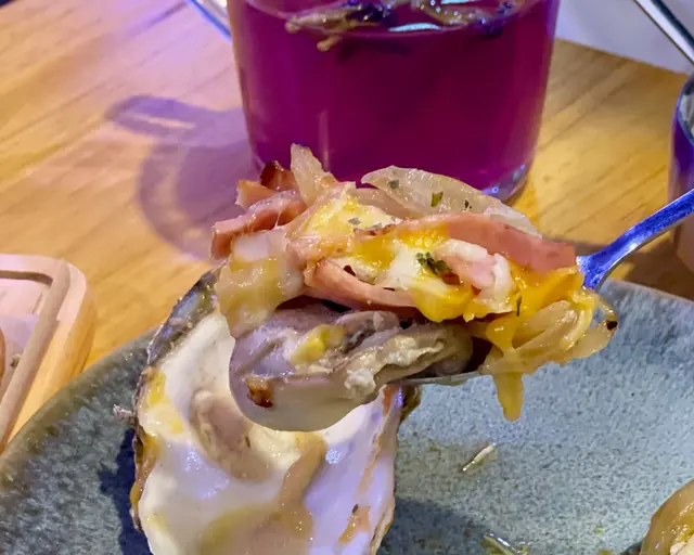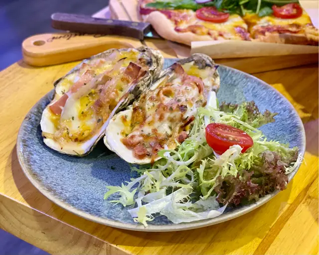 夜晚落大雨吾想煮飯,所以系朗屏西鐵站搵左呢間餐廳食飯。呢度既店員個個都好nice,見我地變左落湯雞,拎左幾張紙巾比我地抹身,坐定先叫我地慢慢睇餐牌叫野食,呢啲有心小店絕對要介紹下!芝士焗生蠔 $68有煙肉芝士同洋蔥焗生蠔,打開芝士會見到生蠔既汁仲keep住,生蠔仲有少少生,如果怕生既話可以叫佢地焗熟啲!七味雞軟骨串 $48雞軟骨有3串,表面加左啲七味粉,食落有好微微既辣。Margarita Pizza $98配料比較簡單既pizza,有蕃茄、羅勒、火箭菜同芝士,餅底有少少厚度。黑松露大啡菇蟹肉長通粉 $98忌廉汁濃郁creamy,撈勻啲長通粉一齊食吾錯,蟹肉都幾多,大啡菇切開都有好多汁。另外宜家只要打卡就可以免費有特別飲品送!我地當然吾執輸!呢杯叫「隨時有驚喜特飲」,其實系蝶豆花茶,另外會跟一小杯檸檬汁,傾落蝶豆花茶,茶既顏色會由藍色變成紫色,飲落去幾重檸檬酸味,幾醒胃,相當有驚喜!抹茶奶泡即系平時飲開既抹茶latte,味道比較甜。最後有驚喜!一路食店員都好好服務,又同我地傾下計,最後仲送左份朱古力 brownie 甜品比我地,仲畫左Winnie the Pooh系碟上面,畫得好靚,仲好配合當日落大雨既天氣!查看更多