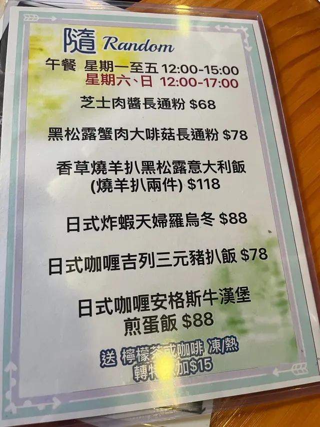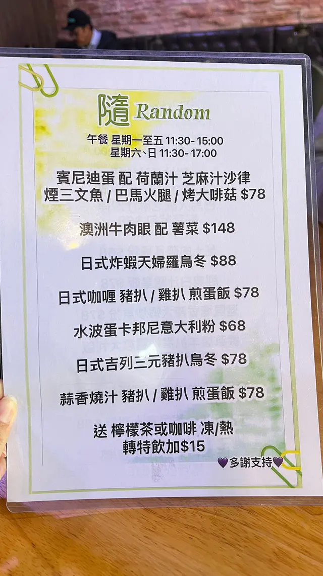 有時諗唔到食咩 會上網好Random 咁search隨便食😂😂點知有間店真係叫做Random望下餐牌又好似幾好wo-💫巴馬火腿芝麻汁沙律配蒜茸包 $63巴馬火腿唔會太咸 而且好大塊 d沙律菜勁新鮮配埋濃郁芝麻汁個份量都好多💫隨時有驚喜特飲應該係梳打加檸檬汁做成一個化學作用係會變色架🍹幾特別 果然好有驚喜-💫澳洲牛肉眼 配 薯菜 $163💫凍抹茶奶泡肉眼7成熟都煮得剛好 大大件又唔會太乾薯條夠脆身 仲有菜類都係有煎過的呢個份量係抵食既-隨 Random元朗媽橫路9號富來花園地下17-18號舖查看更多