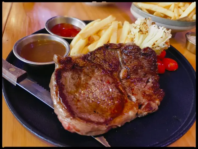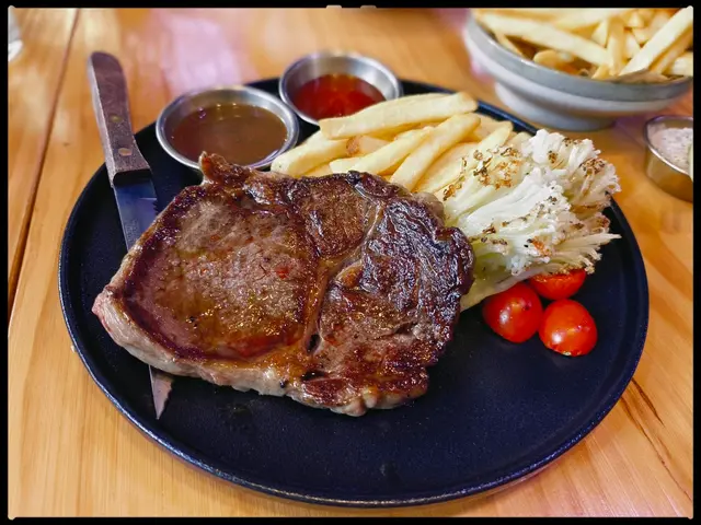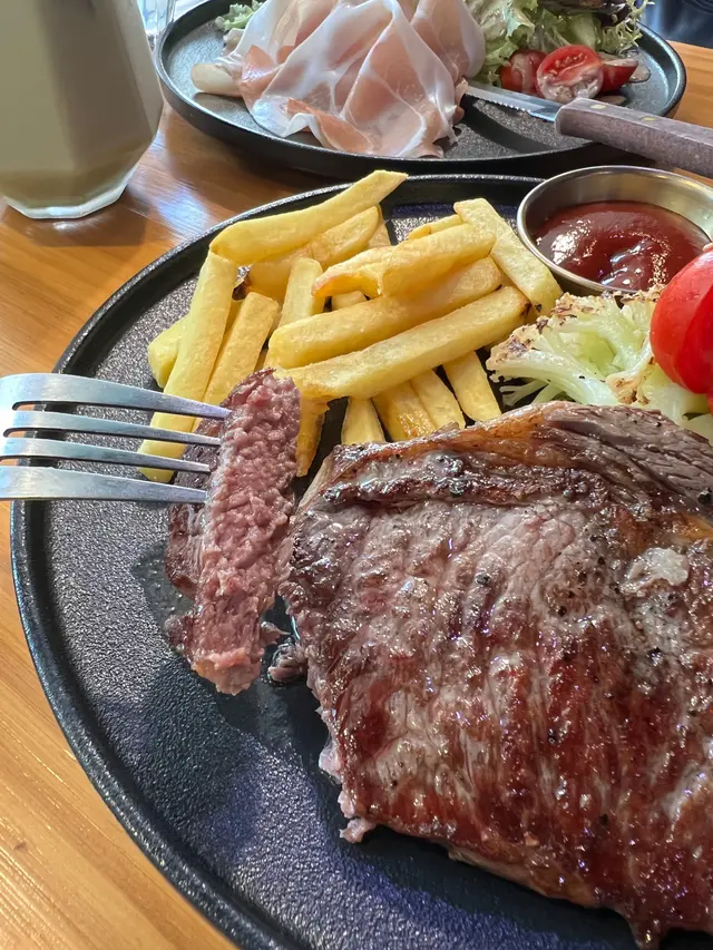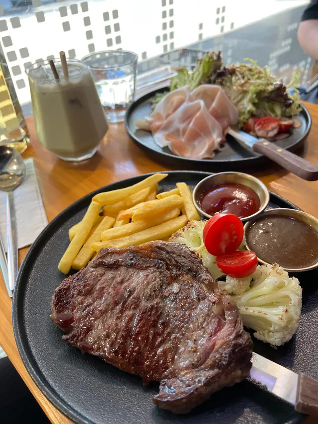 位於朗屏站B2出口橋底,好方便。入面好闊落,一大班朋友嚟坐埋一齊都無問題。午市套餐:🥩澳洲牛肉眼配薯菜 $148今次試左7成熟,又幾好喎,邊煎得好香脆,肉質不錯。🍵+$15雪菊蘋果茶(熱)呢排轉季喉嚨唔舒服,呢杯好啱飲,甜度適中,仲有片蘋果乾,好雅緻。🍝黑松露大啡菇蟹肉長通粉 $78黑松露白汁好香,變左唔太食到蟹肉味,長通粉煮得剛好,大啡菇好juicy。🍹+$15紅蘋果西打好清新,食完薯條,濃味野可以fresh一下。🍟黑松露炸薯條 $48起初以為牛扒個薯菜係薯蓉,咁就叫個薯條食下。呢個黑松露醬好creamy,點薯條好食。💬食物質素整體不錯,座位寬敞舒服,只係鋪頭位置唔開揚位。查看更多