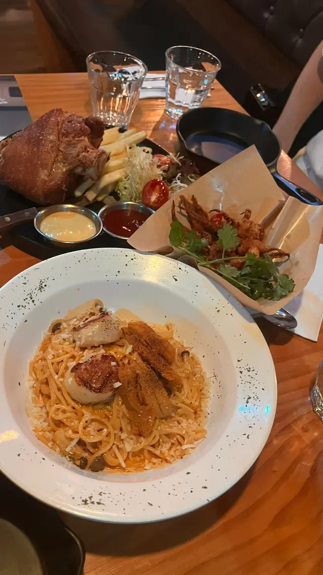 食物質素👌🏻價錢係同區唔算特別平,但係值得再去嘅餐廳😋最初介紹pizza仲有豬手,我話有朋友未到,想叫個薯條食住先,但店主話主菜已經有好多薯條,所以介紹炸魷魚,真心好食🤤之後食咗推介嘅海膽汁意粉,避風塘意粉,pizza,豬手,都好啱我哋胃口,碟碟份量都幾多,兩大兩細食到好飽😅最後店主見到小朋友攞住隻chillkawa公仔,即席為我哋送上畫咗chillkawa嘅甜品,開心到暈😍盡心為客人介紹的小店,係香港已經好少見,希望可以做得長,可以食多幾次💪🏻💪🏻💪🏻查看更多