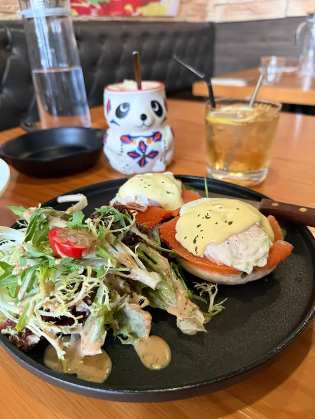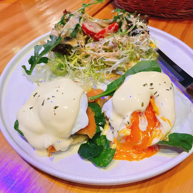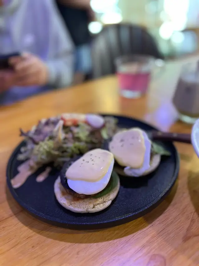 隨呢間位於朗屏站附近既cafe,位置好似好隱蔽,但其實一落天橋就搵到。星期六中午黎到唔太多人,可以舒舒服服食個lunch。香草燒羊扒黑松露意大利飯羊扒可以揀唔同熟度,我就揀左全熟,但食落口感唔韌,仲保留到肉既質感;羊架配埋香草既味道唔錯,唔會覺得有臊味。意大利飯既黑松露味唔算好勁,反而佢既奶香味同菇味會突出啲;飯量都幾大份,但佢撈埋啲忌廉汁,食食下都食左好多。大啡菇賓尼迪蛋配荷蘭汁、芝麻醬沙律芝麻醬沙律都幾新鮮,食落爽口;賓尼迪蛋中間切開係流心家,配埋大大隻大啡菇一齊食,幾健康。底有一塊白面包,都烘得好脆,整體食落口感豐富。凍泡沫奶茶見佢綠綠地飲落似加左綠茶粉既泡沫奶茶,飲落幾清新,唔算好甜。隨時有驚喜特飲上黎係一杯熱既碟豆花茶,仲另外配左shot青檸汁加埋一齊飲。倒青檸沖落去時碟豆花茶就會由藍色變做粉紅色,幾得意,飲落清新。查看更多