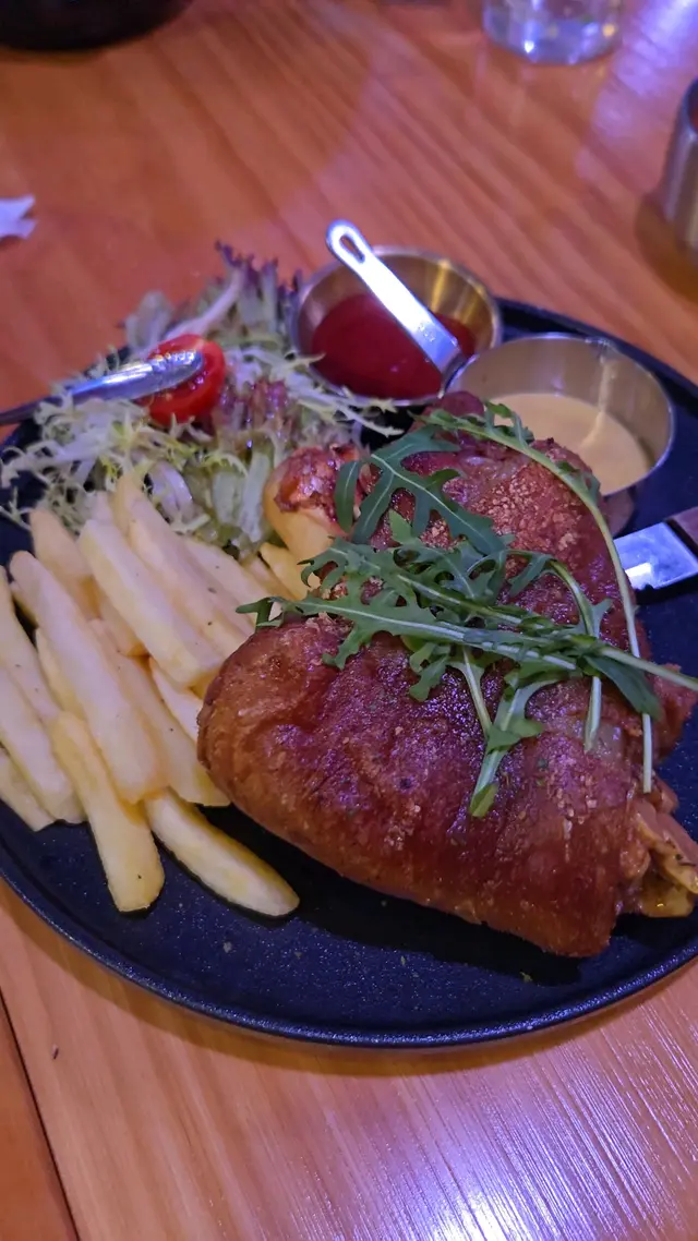 聽朋友講元朗有一間食西餐都幾好食,所以我就同佢一齊去食下。原隻德國鹹豬手配薯條呢一個非常之大隻,仲炸得好香脆,肉亦都好入味,而且仲好嫩滑,再配埋粗薯條真係非常之滿足😋煙三文魚賓尼迪蛋沙律成日見到人食,今次都係第一次去試吓,以為佢好細份唔會好飽肚,但係原來食一件都已經好豐富。佢又有三文魚再有一隻半生熟嘅蛋,在底會有一塊麵包,加埋一齊食,真係非常之正!好想去食多次😍兩個餐都可以加$28去到跟餐,會有湯同埋餐包。佢哋嘅餐湯係用薯仔打出嚟,所以好Creamy同埋好好味🤤我自己最鍾意蝶豆花個杯,好fresh之餘仲要睇住佢變色真係非常之靚🤗查看更多