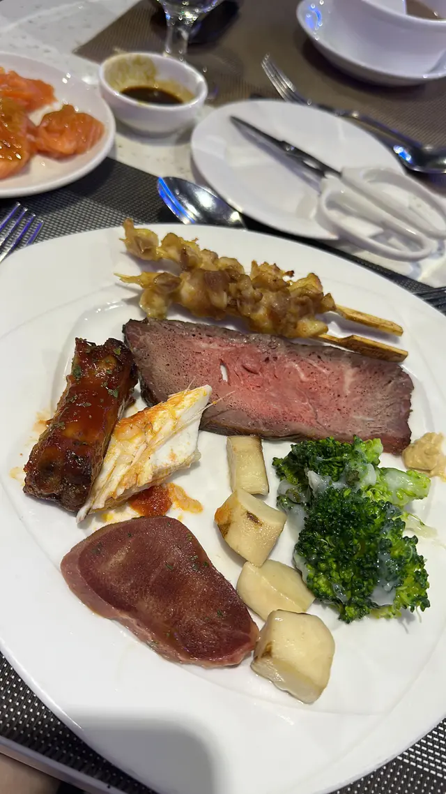忽然想再過來試佢的自助午餐🍽️, 經他們的官網訂位, 比安排坐四人梳化位, 望住玻璃外的街景👍, 出去望下有乜嘢食, 選擇真係不多, 有炒菜, 煮包, 中西湯, 炒飯, 豬扒, 豬柳, 薯蓉, 炸三文魚,藍青口, 炒菜都叫炒得翠綠, 炒飯都炒得幾好味同乾身, 豬扒同豬柳的味道算唔錯, 薯蓉亦好香滑👍, 炸三文魚食左少少試味, 已經無興😅趣再試, 藍青口食落味道感覺唔係太新鮮😆, 另外有咖☕啡奶茶橙汁🍊蘋果🍎汁, 橙汁🍊同蘋果🍎汁都叫ok, 甜品有外面d cake同芝麻糊, 亦有雪櫃一杯🍮🧁🍰, 味道都叫唔差, 比熟食高質, 咖喱配印度薄餅味道已經叫唔差😄食落唔辣好香, 豬脚薑好深色, 不過無乜味, 魚生種類唔多, 但質素叫合格😂, 沙律款式種類不多, 叫可以接受😀, 反而湯粉的味道唔錯, 個湯底好味👍, 也有西瓜同哈蜜瓜同阿xx雪糕, 不過只食点水果, 無食🍨, 但以百多元一位, 有指定信用卡再有折, 要求又不能太過高了😆😅…查看更多