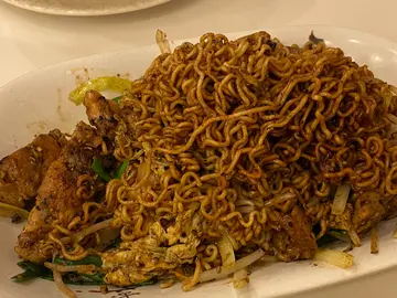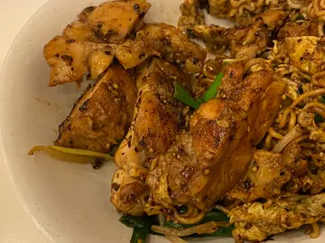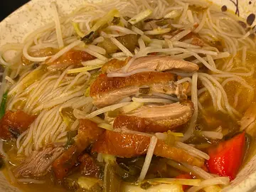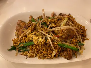 同🤴🏻去元朗商场onepiece 展览,就去周边睇吓有咩食😄😄,门口有侍应执枱,我讲左我地两位,侍应一个眼神叫我地入去,非常贴地!😆😆~~~黑椒鸡扒炒一丁~~~第一眼以为好干,食落ok都几湿润,鸡扒有3-4块中型size略厚,仲有炒蛋系里面Tim 😁😁!但可惜黑椒味过重,可以话掩盖晒其他食材7成嘅味😗😗~~~雪菜火鸭丝米~~~Ok 正常,雪菜味一般,火鸭唔错唔会好 ‘ 柴 ’ ☺️☺️我个餐都食得饱,但🤴🏻话个餐就好似食左阵 ‘ 风🌬 ’ !😝😝